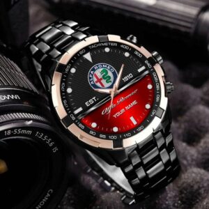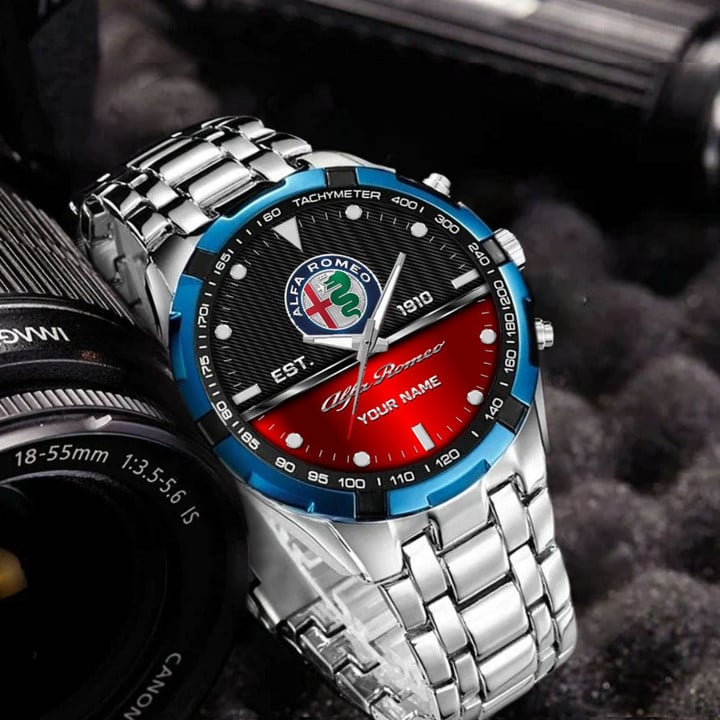 With the launch of the exclusive Made-to-Order service, you can make your watch unique by not only having your special Alfa Romeo Emblem but also your Name printed on the watch. Elevate your style with our custom watches featuring your favorite car logo. Meticulously crafted for durability and water resistance, these watches are the perfect item for daily use. Discover the ultimate combination of luxury, utility, and personalization!