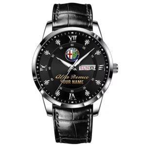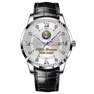 With the launch of the exclusive Made-to-Order service, you can make your watch unique by not only having your special Alfa Romeo Emblem but also your Name printed on the watch. Elevate your style with our custom watches featuring your favorite car logo. Meticulously crafted for durability and water resistance, these watches are the perfect item for daily use. Discover the ultimate combination of luxury, utility, and personalization!
