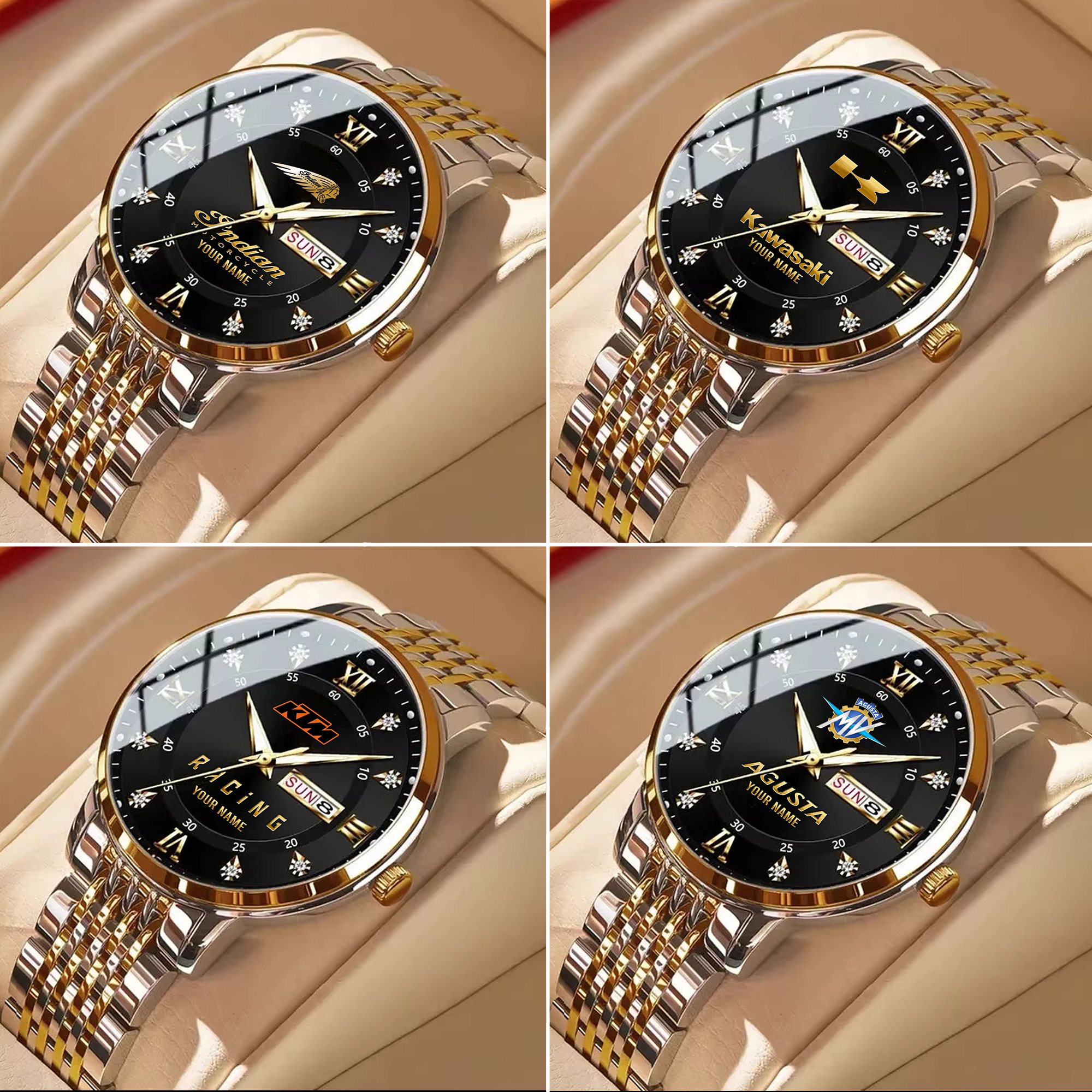 Hi there!! Are you looking at our All Motorcycle Brand watch. These watches are unique, made with love, and they are perfect accessories for your outfit. The All Motorcycle Brand Emblem on the watch makes it a perfect item for any All Motorcycle Brand Lovers.