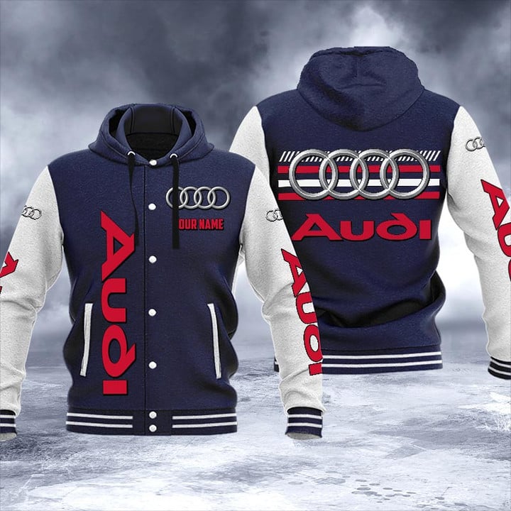 Hi there!! Are you looking at our Audi baseball Jacket. These baseball jackets are unique, made with love, and they are perfect accessories for your outfit. The Audi Emblem on the baseball jacket makes it a perfect item for any Audi Lovers.