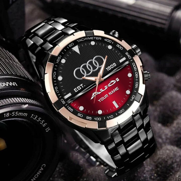 With the launch of the exclusive Made-to-Order service, you can make your watch unique by not only having your special Audi Emblem but also your Name printed on the watch. Elevate your style with our custom watches featuring your favorite car logo. Meticulously crafted for durability and water resistance, these watches are the perfect item for daily use. Discover the ultimate combination of luxury, utility, and personalization!