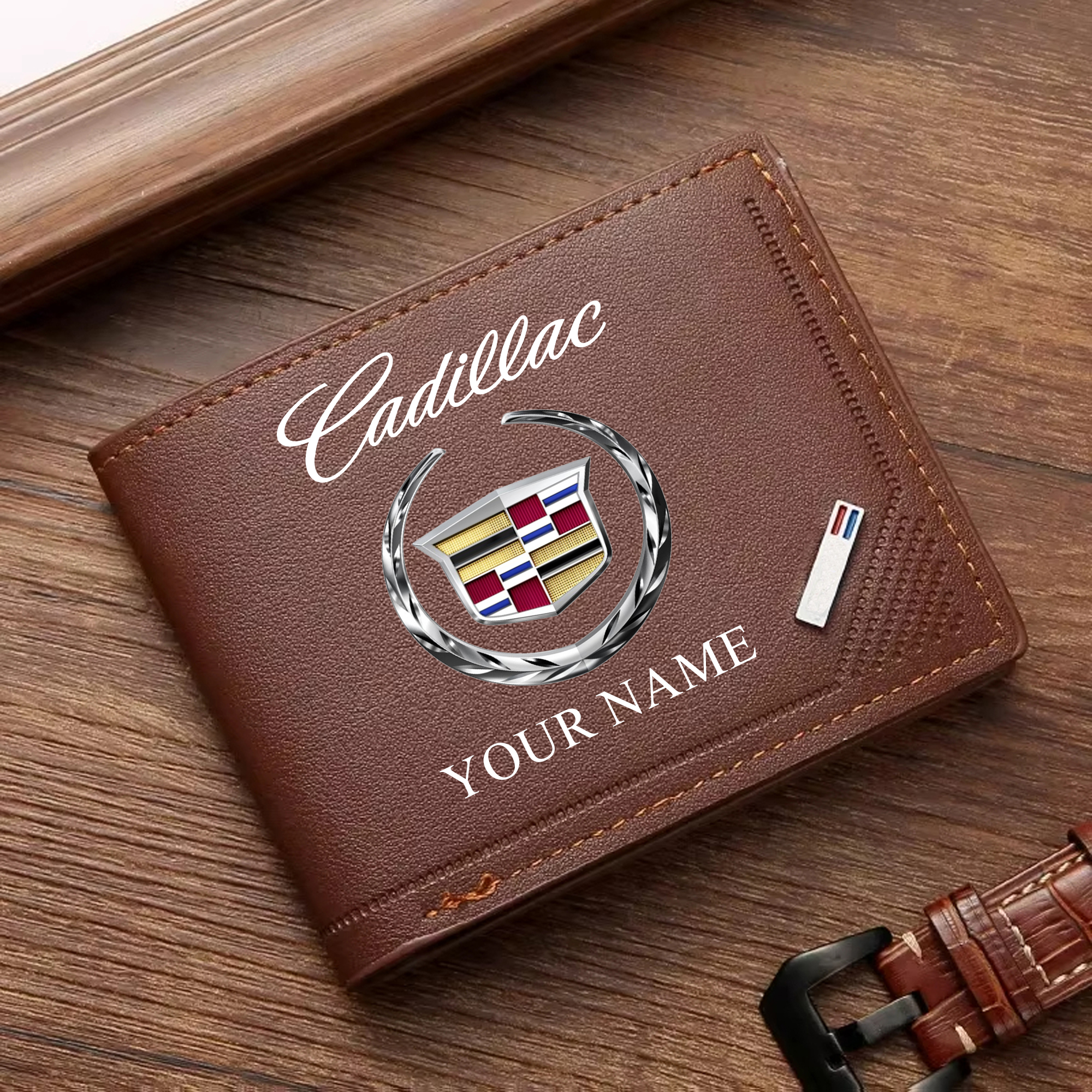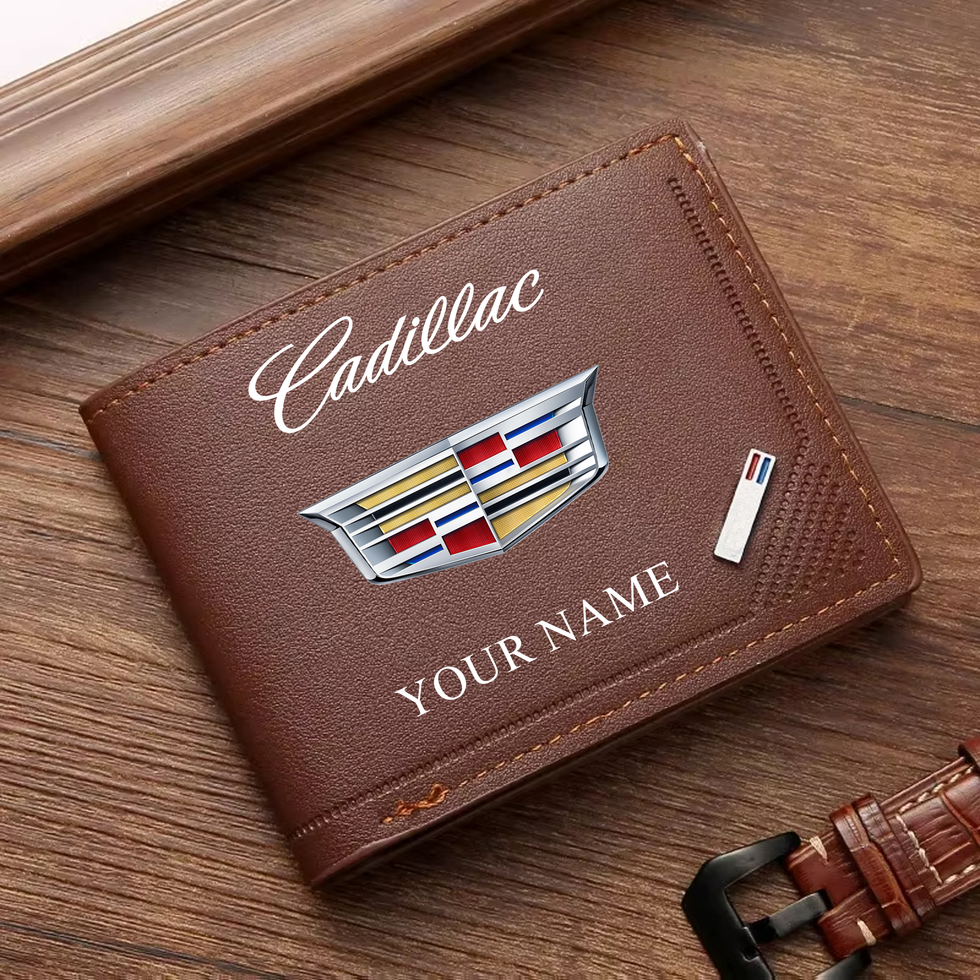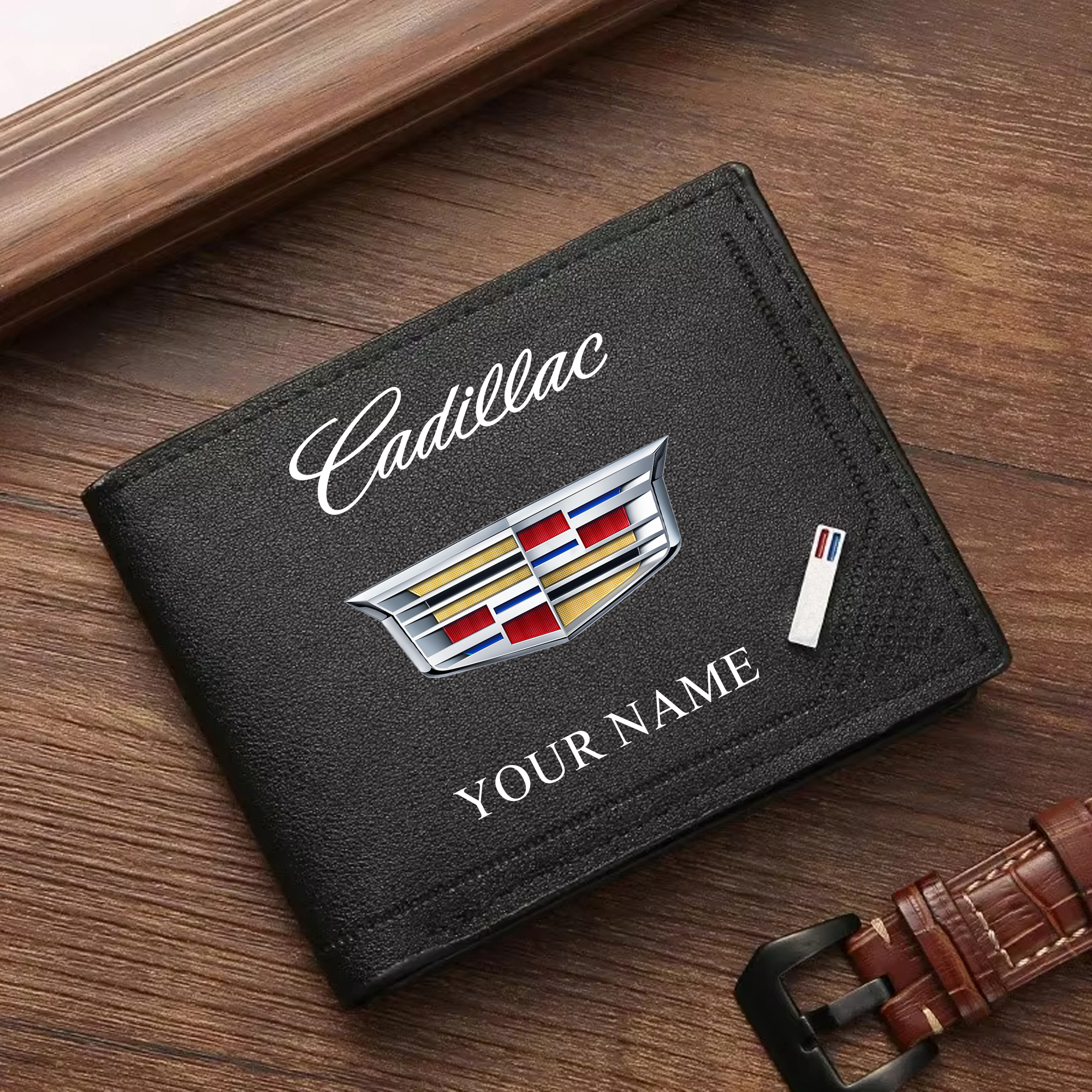 With the launch of the exclusive Made-to-Order service, you can make your Wallet unique by not only having your special Cadillac Emblem but also your Name printed on the item. Upgrade your everyday carry with our custom leather wallets, featuring your favorite car emblem. Crafted from soft leather and boasting multiple pockets, these wallets blend style with functionality.