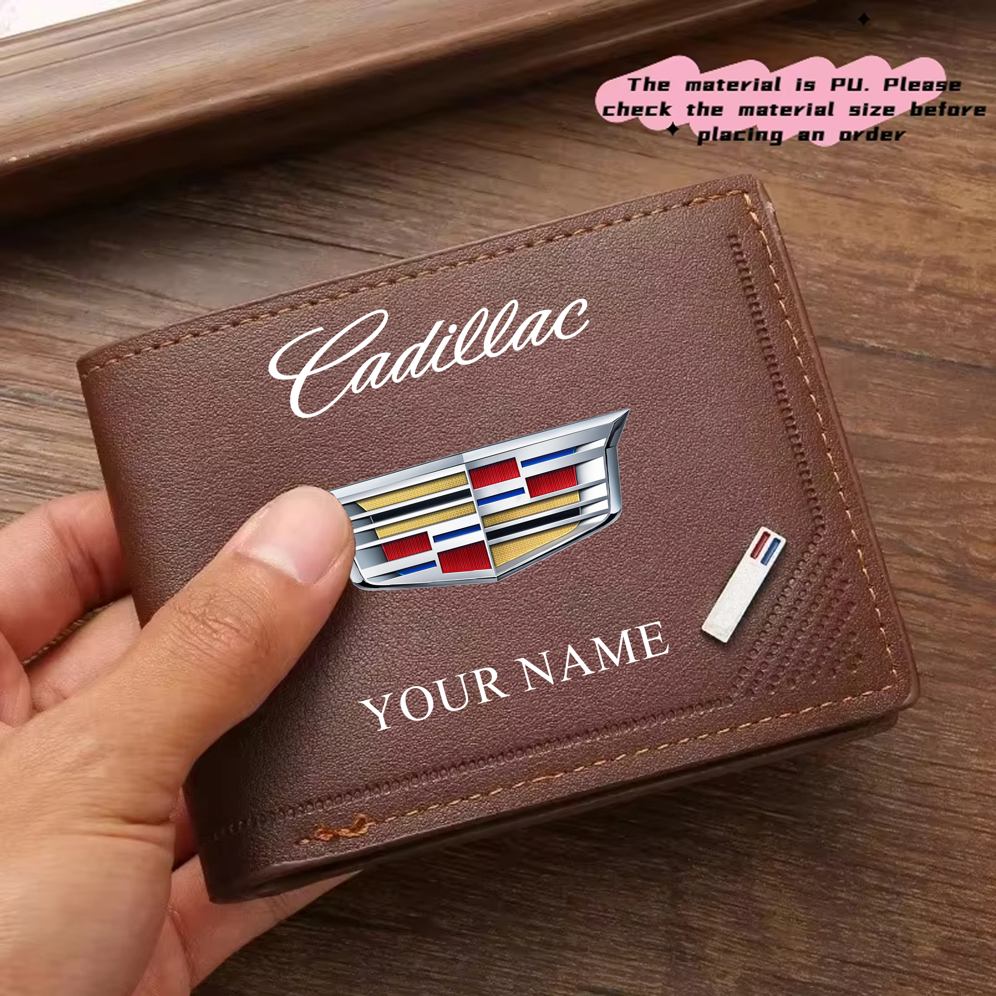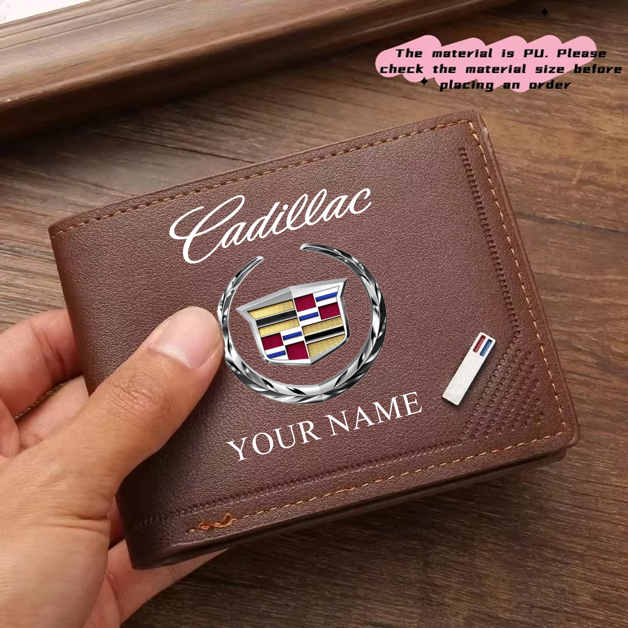 Hi there!! Are you looking at our Cadillac Wallet. These Wallets are unique, made with love, and they are perfect accessories for your outfit. The Cadillac Emblem on the Wallet makes it a perfect item for any Cadillac Lovers.