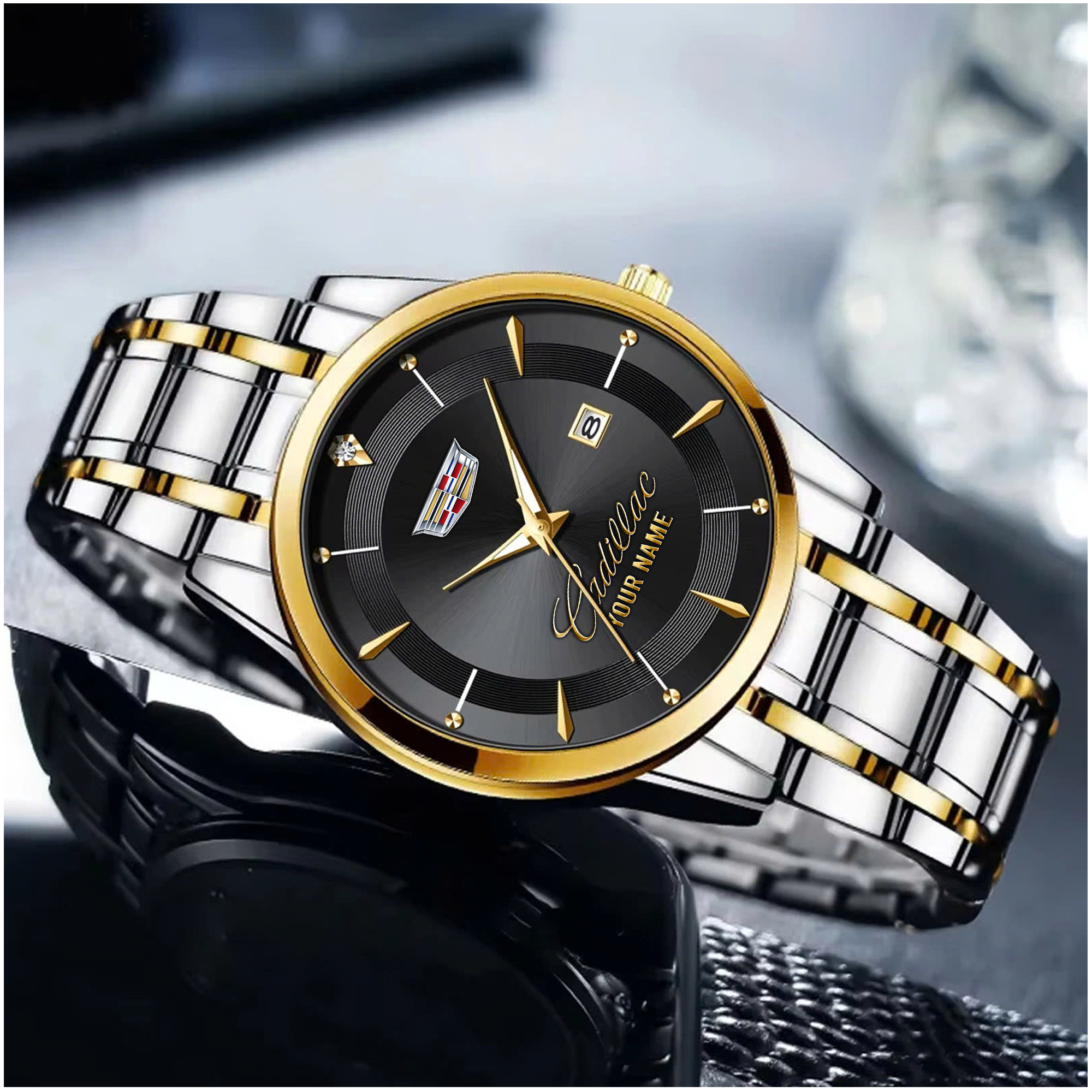 With the launch of the exclusive Made-to-Order service, you can make your watch unique by not only having your special Cadillac Emblem but also your Name printed on the watch. Elevate your style with our custom watches featuring your favorite car logo. Meticulously crafted for durability and water resistance, these watches are the perfect item for daily use. Discover the ultimate combination of luxury, utility, and personalization!