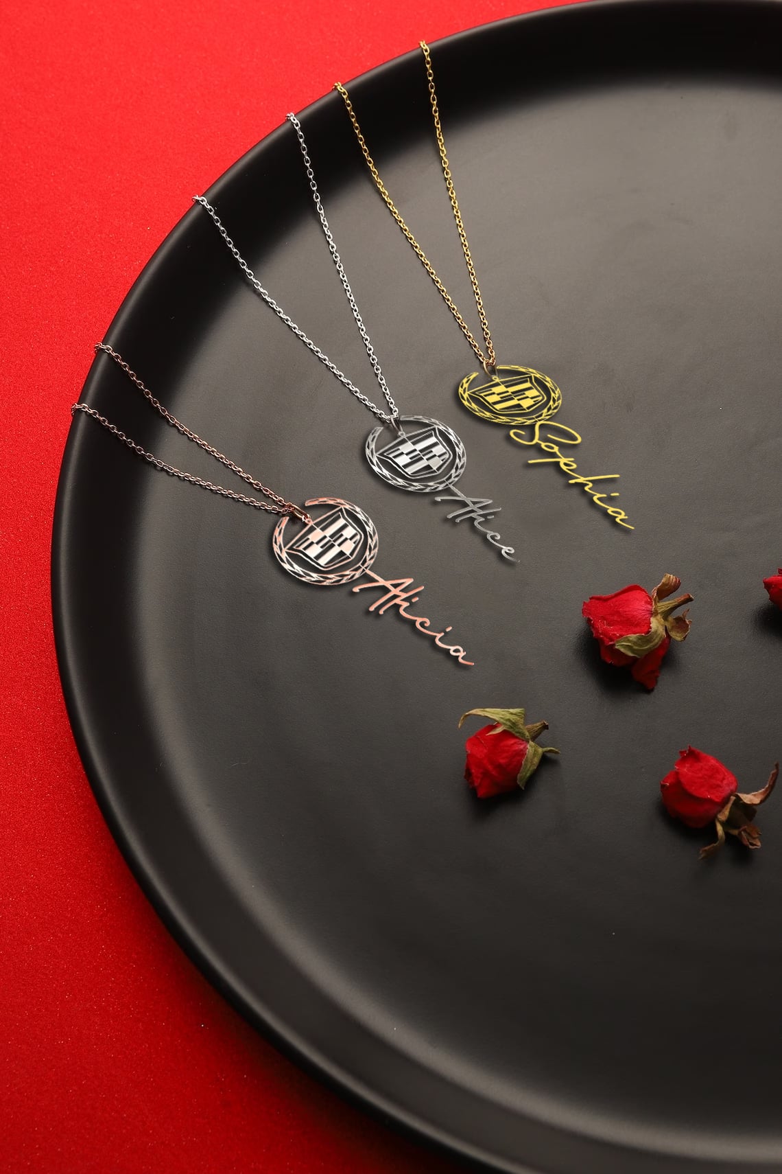 Hi there!! Are you looking at our Cadillac Necklace. Our custom designs offer a personal touch that’s perfect for any look. This Necklace for Women is made with high-quality High Quality 925 Sterling Silver and is sure to become a staple in your wardrobe. The Cadillac Emblem on the necklace makes it a perfect item for any Cadillac Lovers.