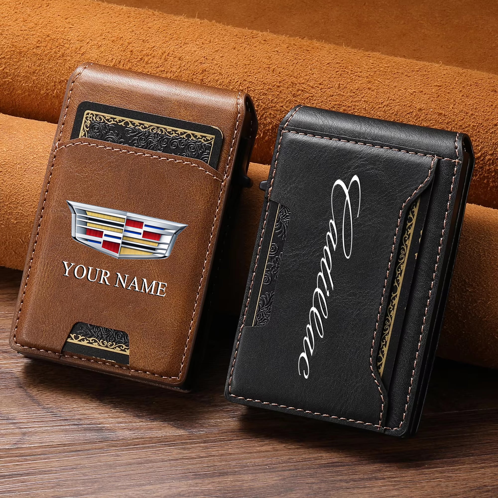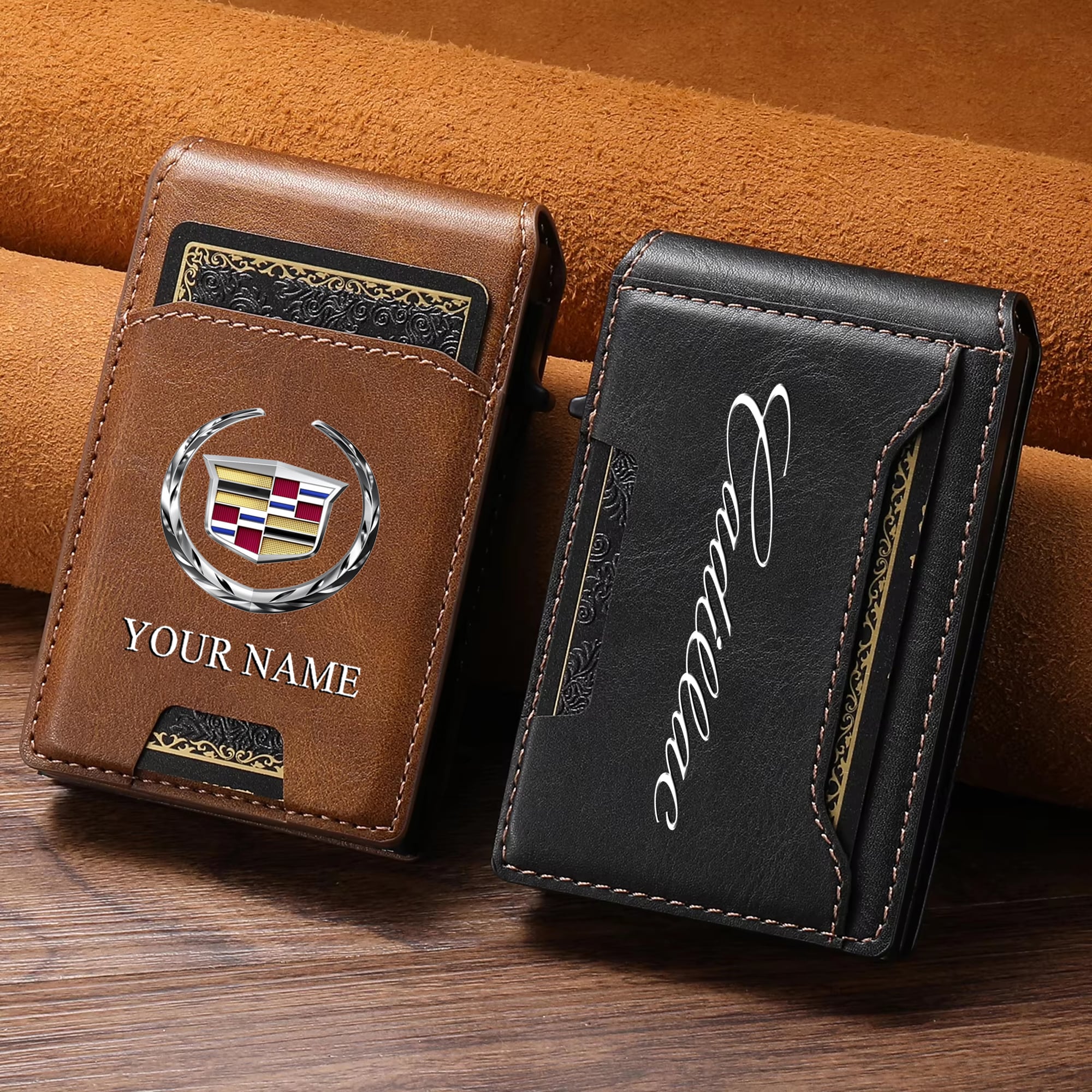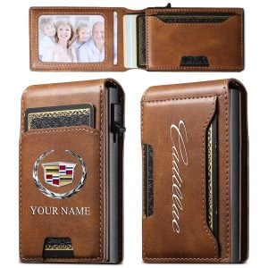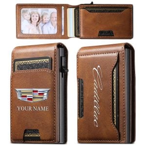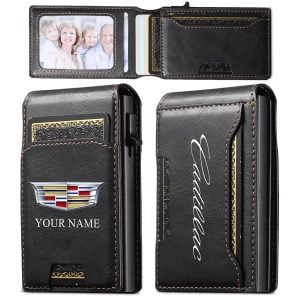 Cadillac Custom Name Slim Card Holder With Photo Slot Leather Wallet VS22