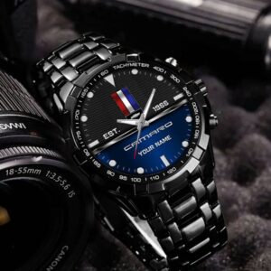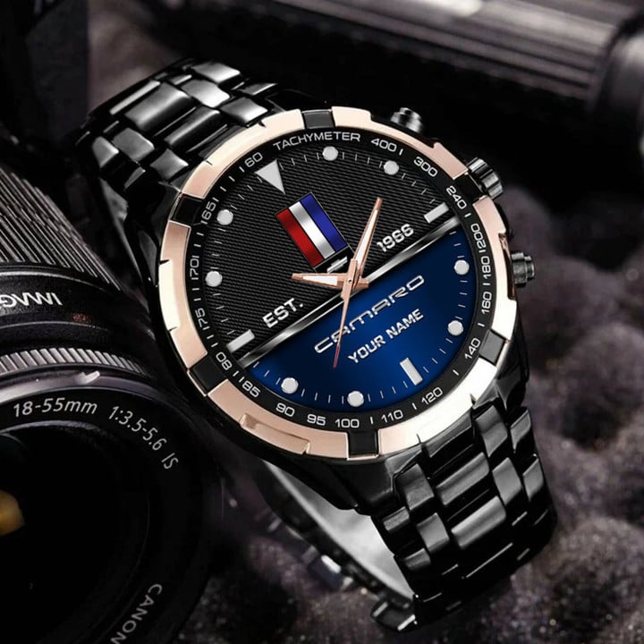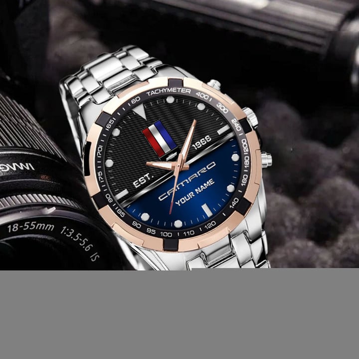 With the launch of the exclusive Made-to-Order service, you can make your watch unique by not only having your special Camaro Emblem but also your Name printed on the watch. Elevate your style with our custom watches featuring your favorite car logo. Meticulously crafted for durability and water resistance, these watches are the perfect item for daily use. Discover the ultimate combination of luxury, utility, and personalization!