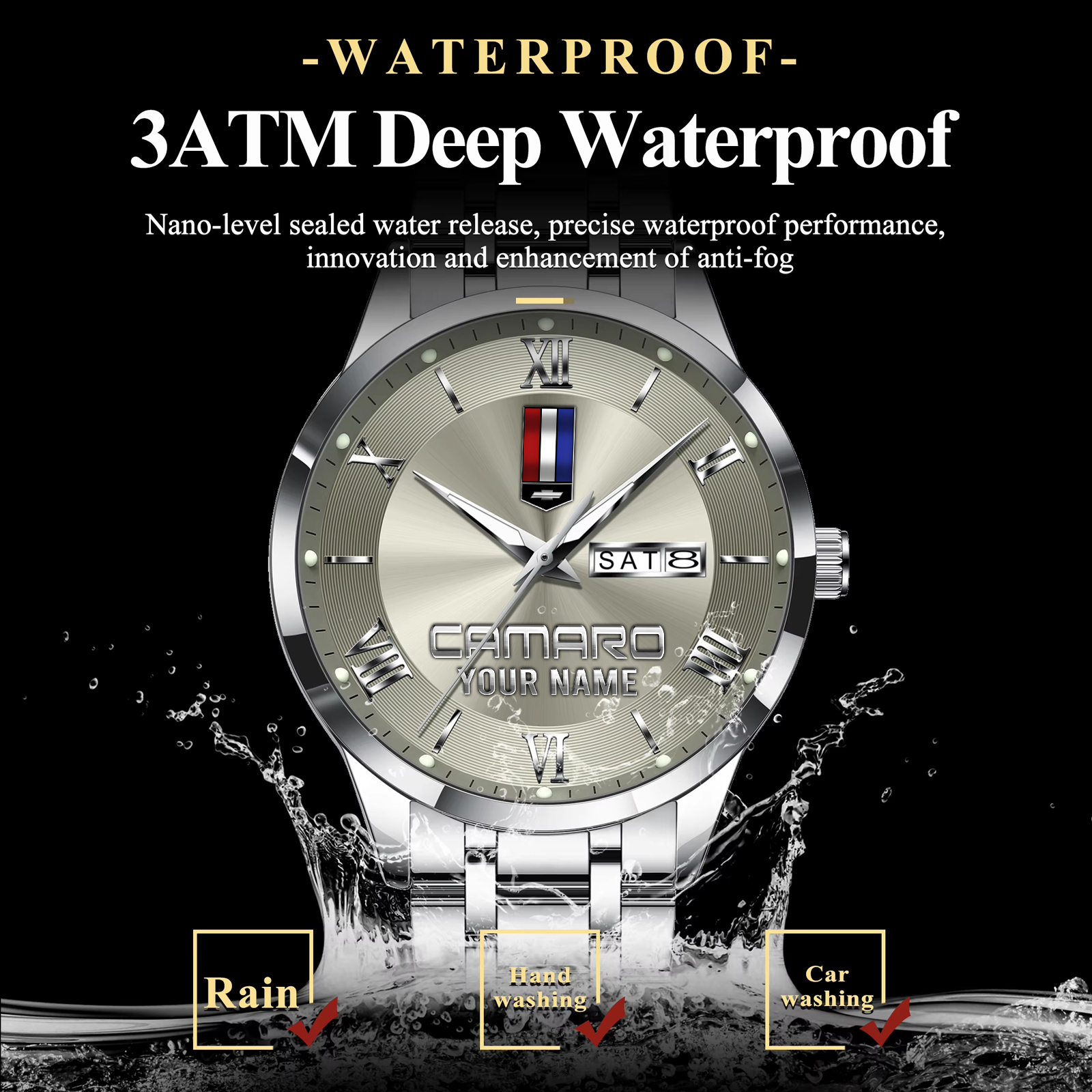 With the launch of the exclusive Made-to-Order service, you can make your watch unique by not only having your special Camaro Emblem but also your Name printed on the watch. Elevate your style with our custom watches featuring your favorite car logo. Meticulously crafted for durability and water resistance, these watches are the perfect item for daily use. Discover the ultimate combination of luxury, utility, and personalization!