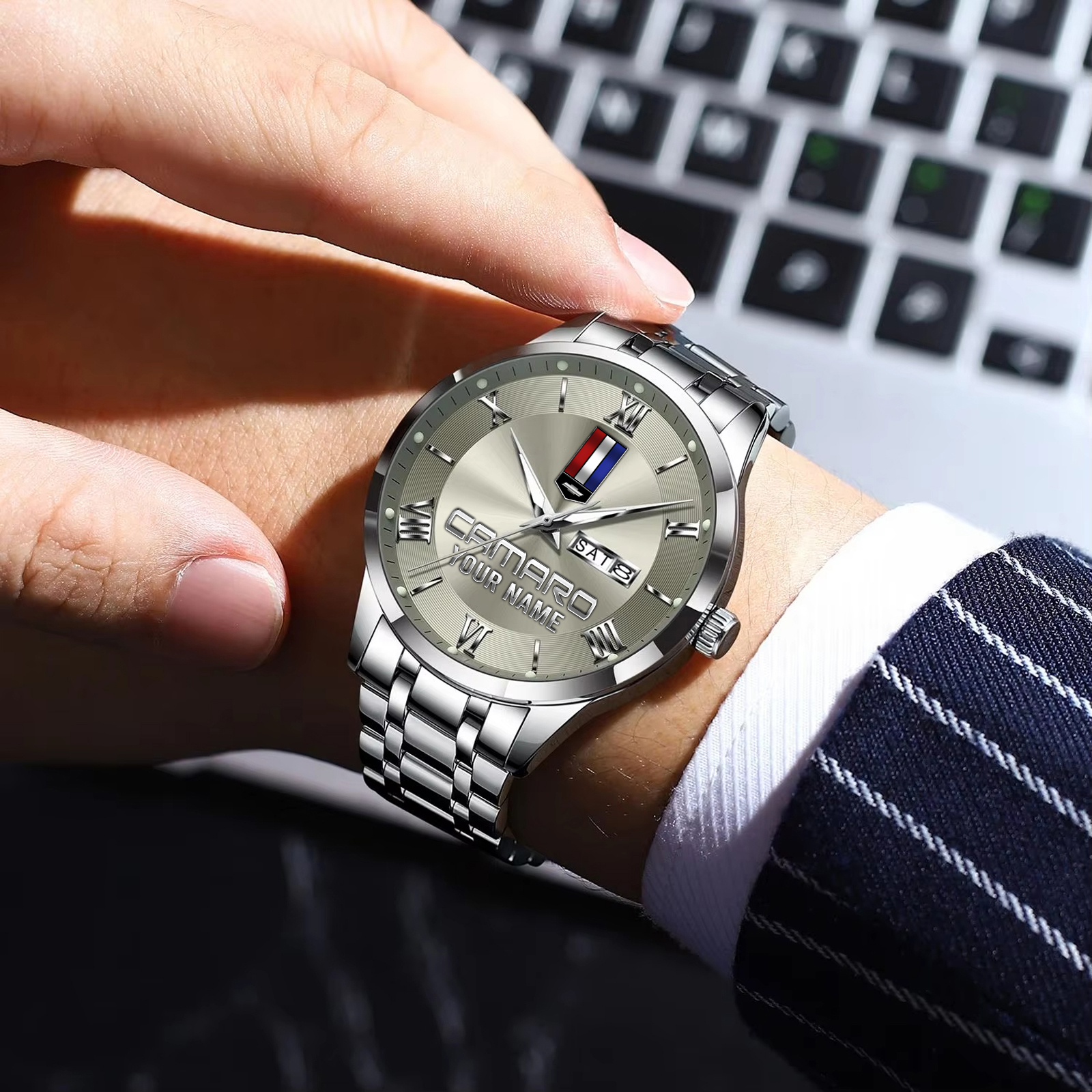 With the launch of the exclusive Made-to-Order service, you can make your watch unique by not only having your special Camaro Emblem but also your Name printed on the watch. Elevate your style with our custom watches featuring your favorite car logo. Meticulously crafted for durability and water resistance, these watches are the perfect item for daily use. Discover the ultimate combination of luxury, utility, and personalization!