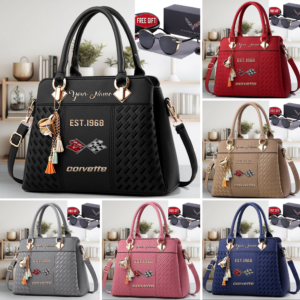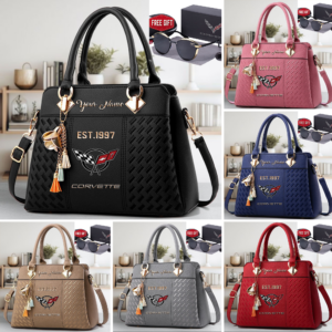 Corvette Custom Name Classic Leather Handbag With Glasses Gift VS4