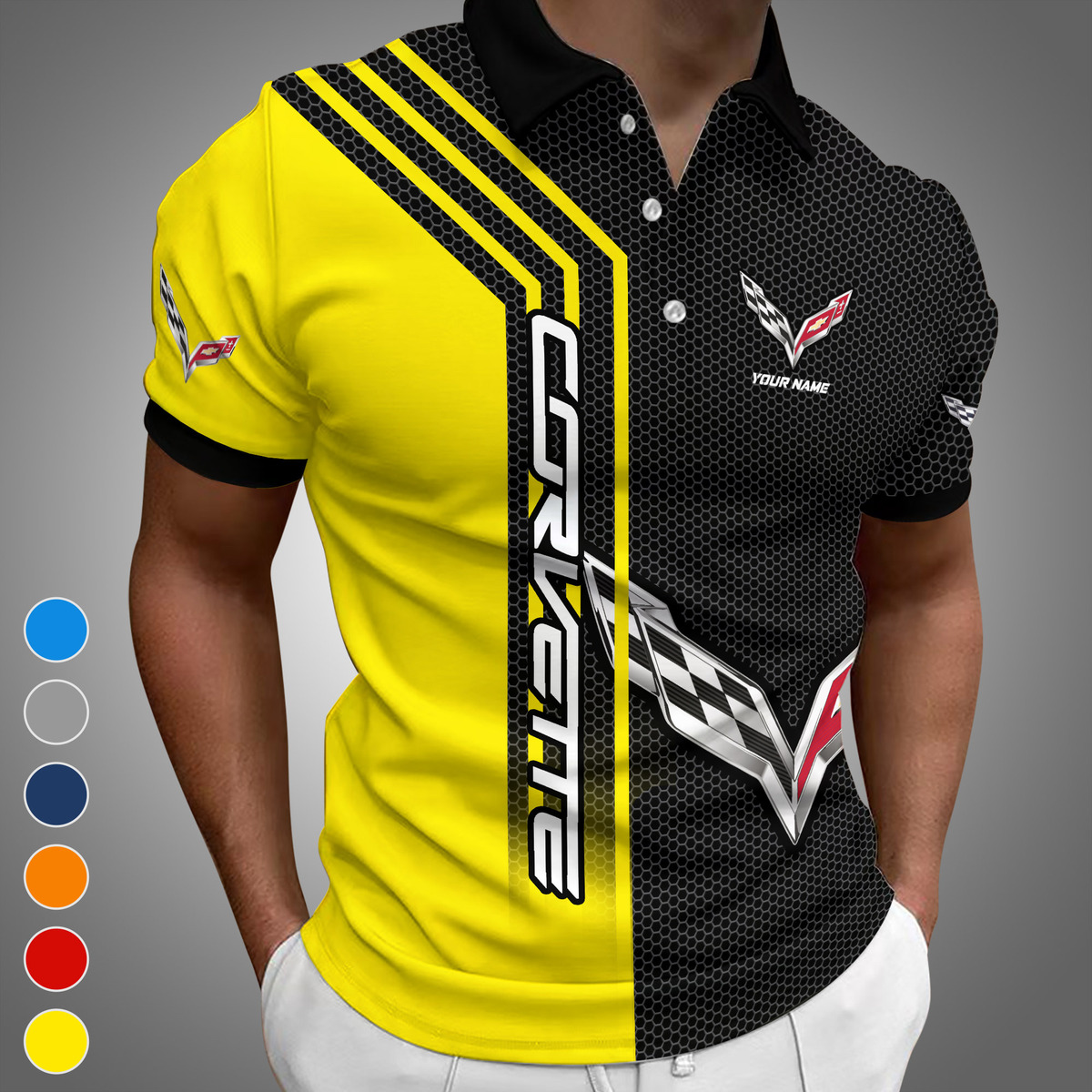 Hi there!! Are you looking at our Corvette Polo Shirts. These Polo Shirts are unique, made with love, and they are perfect accessories for your outfit. The Corvette Emblem on the Shirts makes it a perfect item for any Corvette Lovers.