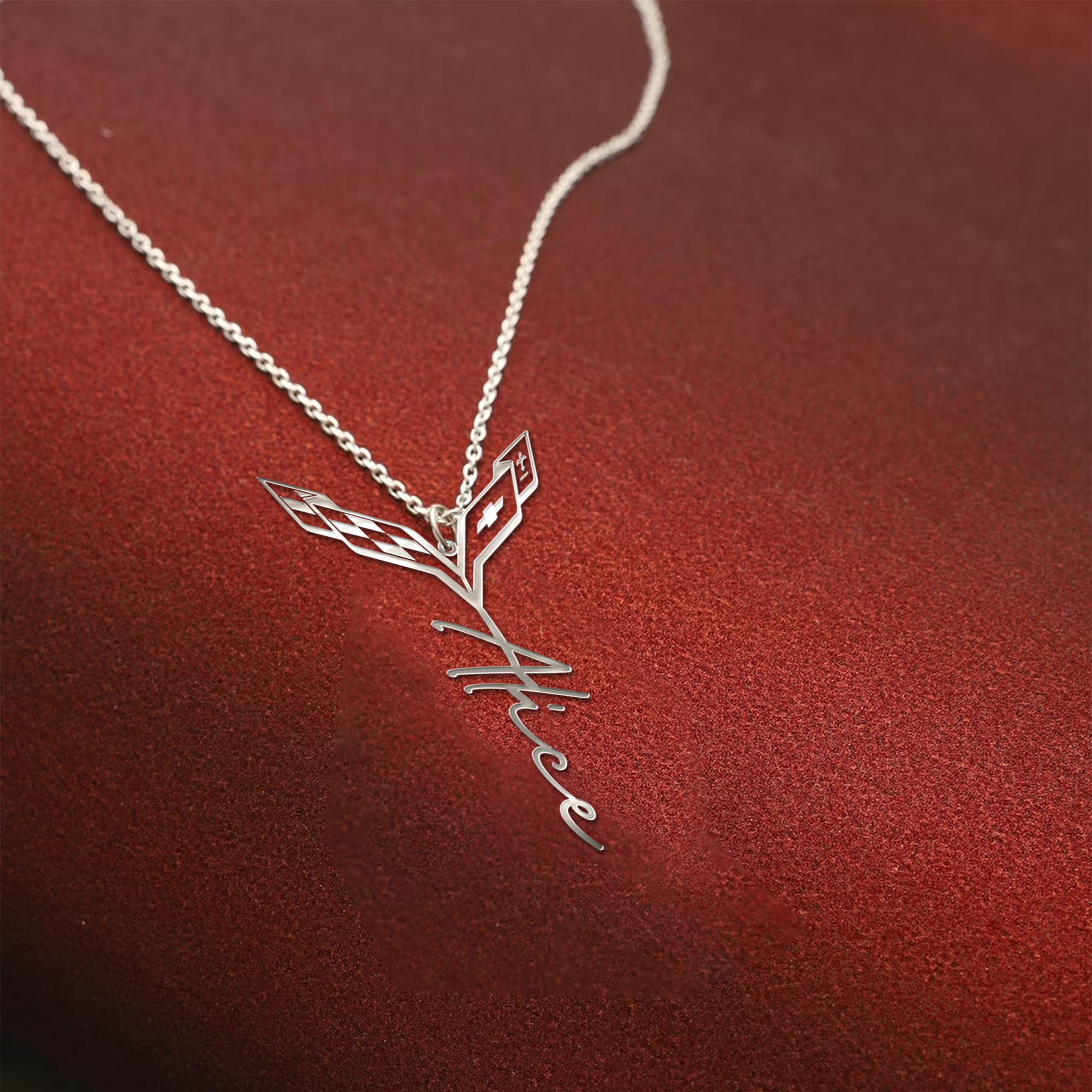 Hi there!! Are you looking at our Corvette Necklace. Our custom designs offer a personal touch that’s perfect for any look. This Necklace for Women is made with high-quality High Quality 925 Sterling Silver and is sure to become a staple in your wardrobe. The Corvette Emblem on the necklace makes it a perfect item for any Corvette Lovers.