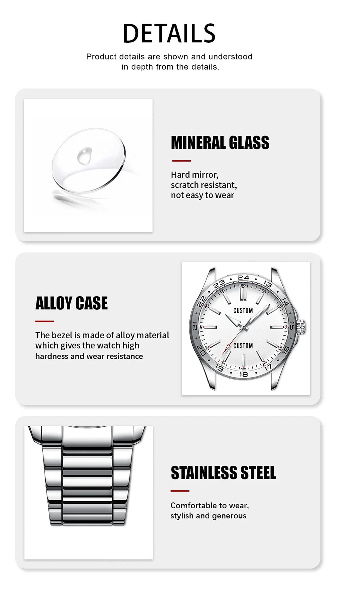 - Modern Numberless Dial Design: Clean minimalist dial without numerals delivers a sleek and contemporary look suitable for casual and business outfits.