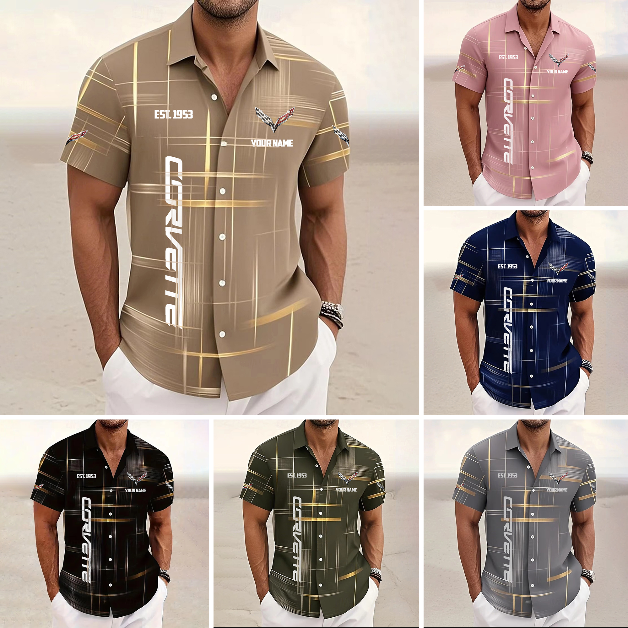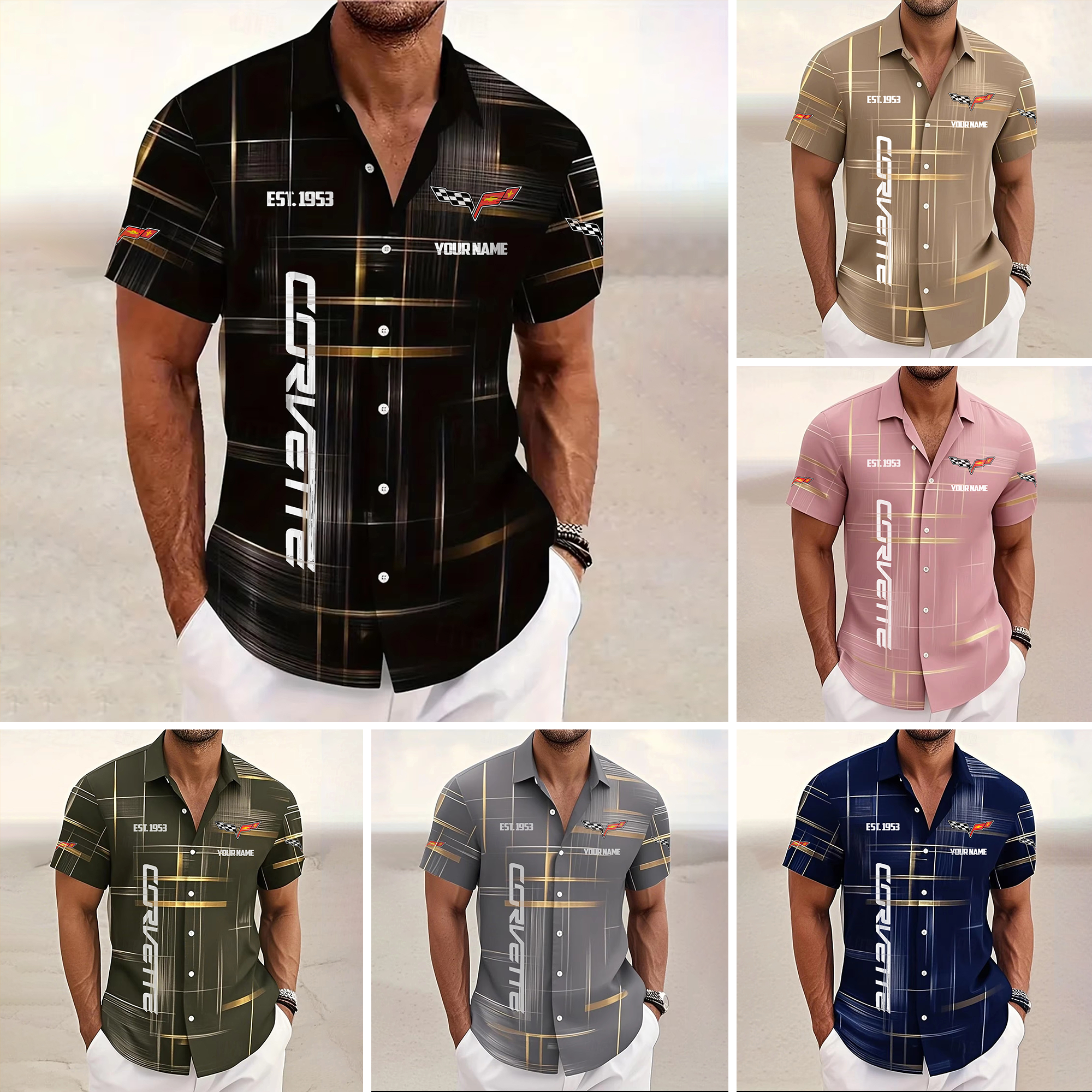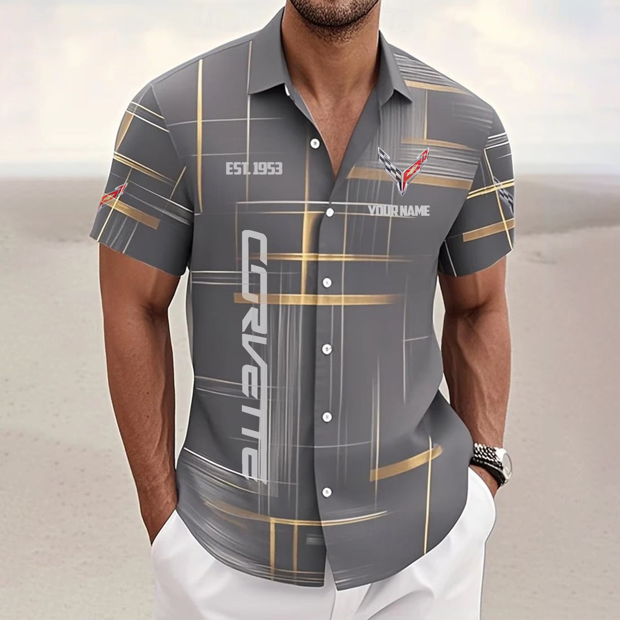 Corvette Custom Name Short SleeveTurndown Button Up Hawaiian Shirt VS08