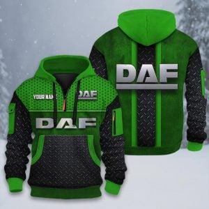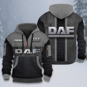 Hi there!! Are you looking at our DAF Trucks Half-zip Hoodie. These Half-zip Hoodies are unique, made with love, and they are perfect accessories for your outfit. The DAF Trucks Emblem on the Half-zip Hoodie makes it a perfect item for any DAF Trucks Lovers.