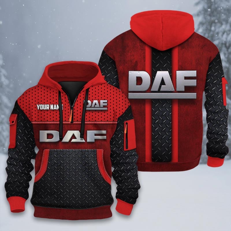 Hi there!! Are you looking at our DAF Trucks Half-zip Hoodie. These Half-zip Hoodies are unique, made with love, and they are perfect accessories for your outfit. The DAF Trucks Emblem on the Half-zip Hoodie makes it a perfect item for any DAF Trucks Lovers.