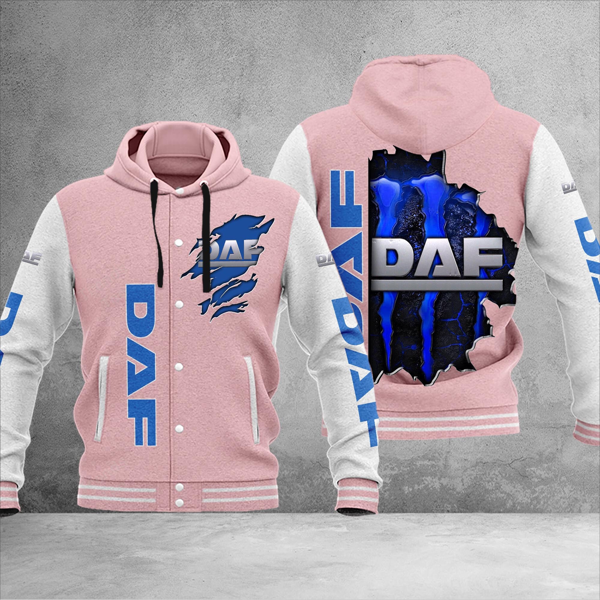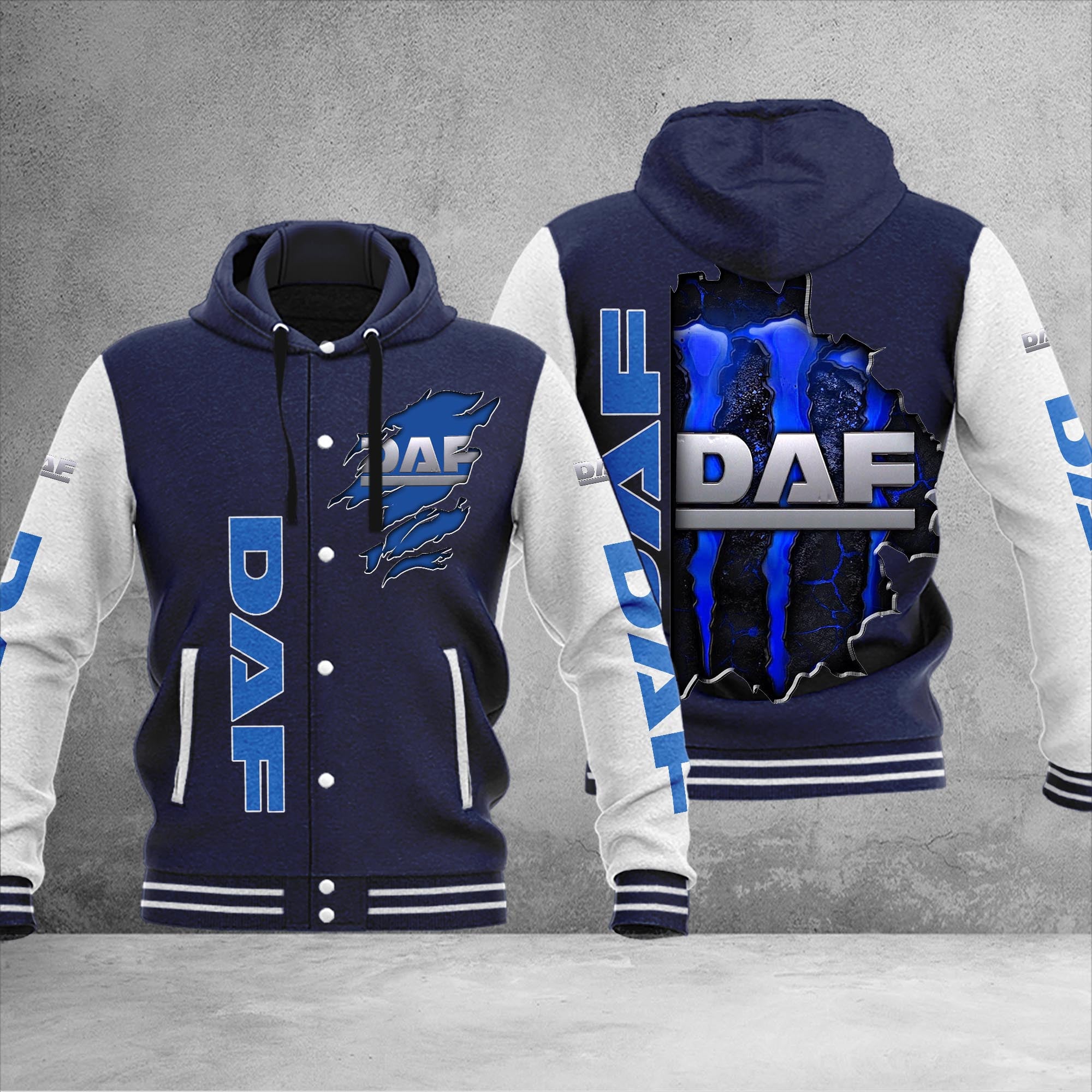 Hi there!! Are you looking at our DAF Trucks Baseball Jacket and Baseball Hoodie Jacket. These DAF Trucks Baseball Jacket and Baseball Hoodie Jacket are unique, made with love, and they are perfect accessories for your outfit. The DAF Trucks Emblem on the Baseball Jacket and Baseball Hoodie Jacket makes it a perfect item for any DAF Trucks Lovers.