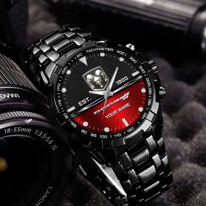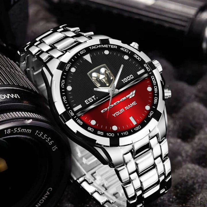 With the launch of the exclusive Made-to-Order service, you can make your watch unique by not only having your special Dodge Emblem but also your Name printed on the watch. Elevate your style with our custom watches featuring your favorite car logo. Meticulously crafted for durability and water resistance, these watches are the perfect item for daily use. Discover the ultimate combination of luxury, utility, and personalization!
