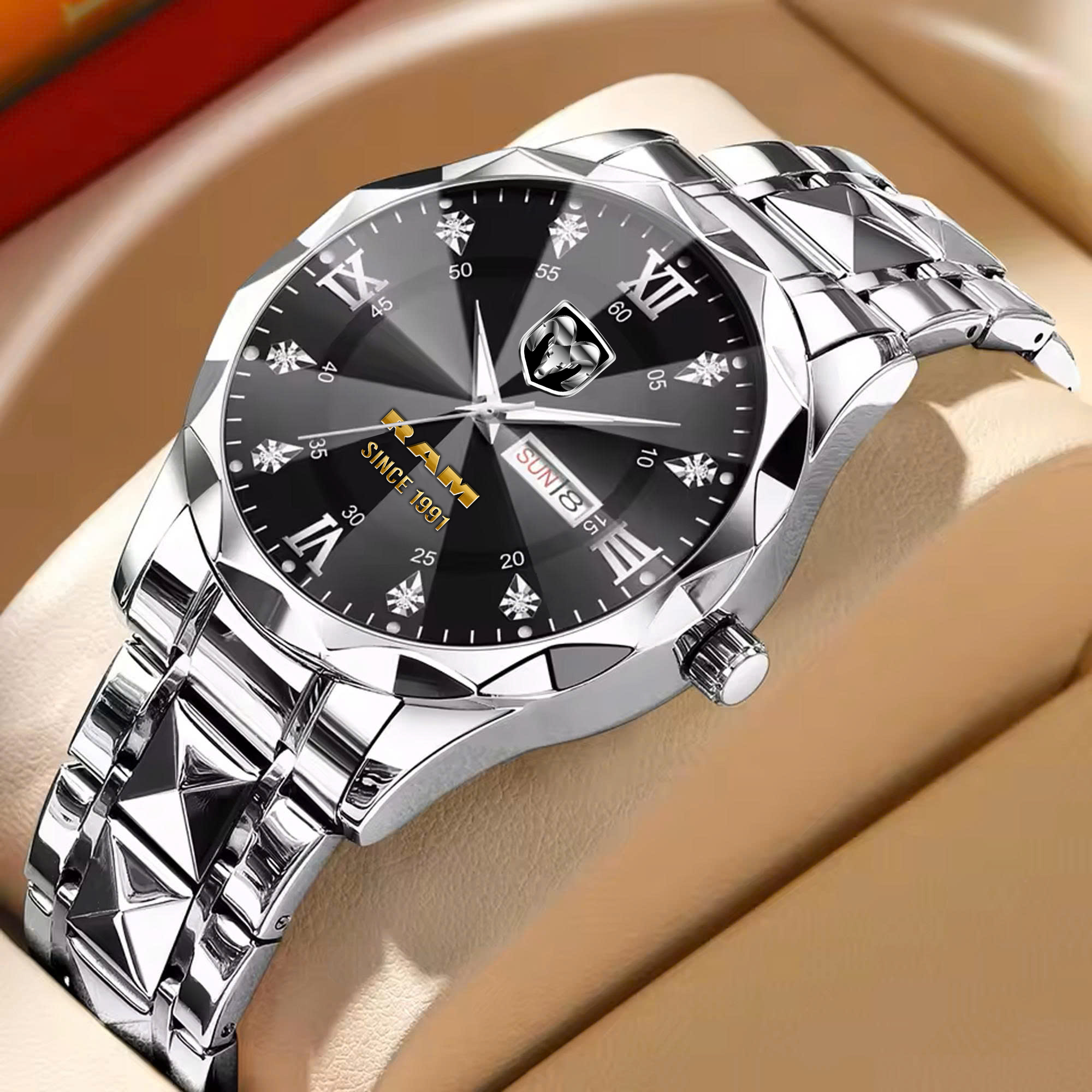 With the launch of the exclusive Made-to-Order service, you can make your watch unique by having your special Dodge Ram Emblem printed on the watch. Elevate your style with our custom watches featuring your favorite car logo. Meticulously crafted for durability and water resistance, these watches are the perfect item for daily use. Discover the ultimate combination of luxury, utility, and personalization!