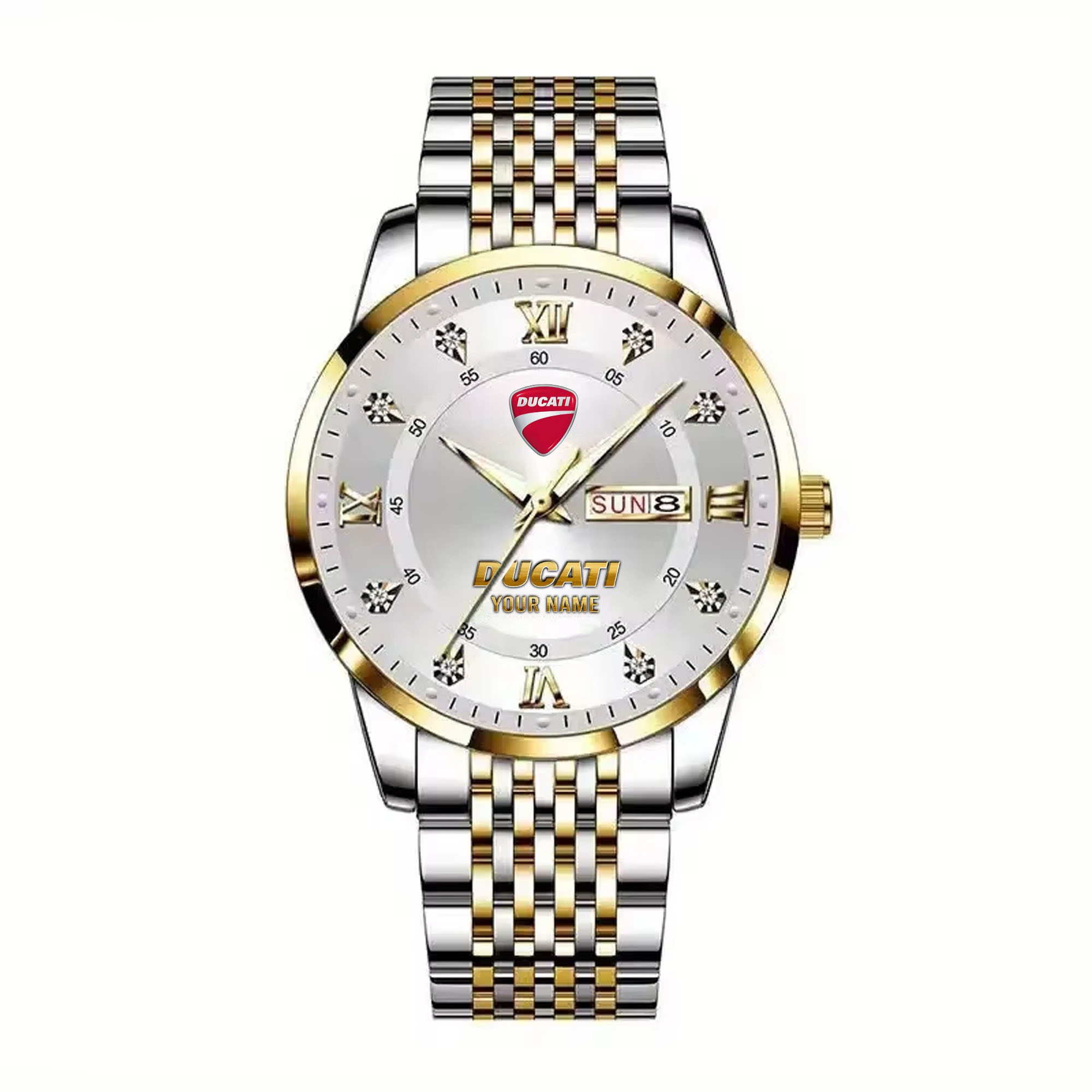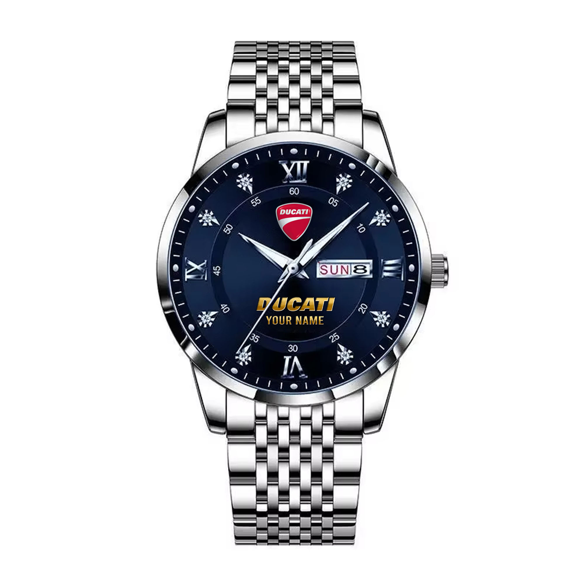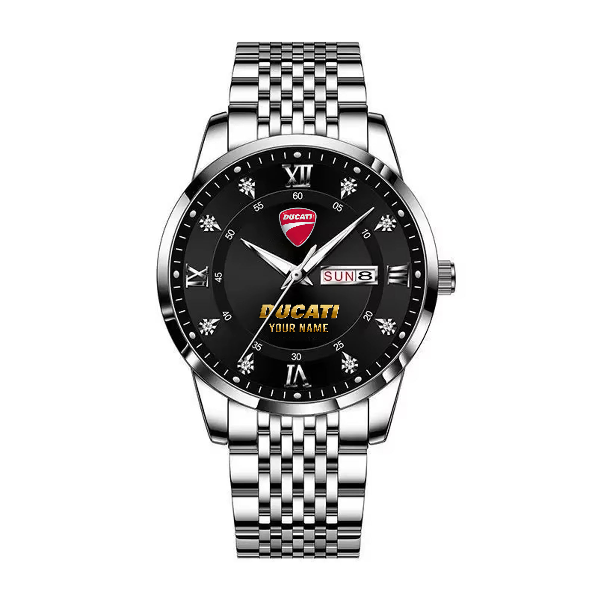 With the launch of the exclusive Made-to-Order service, you can make your watch unique by not only having your special Ducati Emblem but also your Name printed on the watch. Elevate your style with our custom watches featuring your favorite car logo. Meticulously crafted for durability and water resistance, these watches are the perfect item for daily use. Discover the ultimate combination of luxury, utility, and personalization!