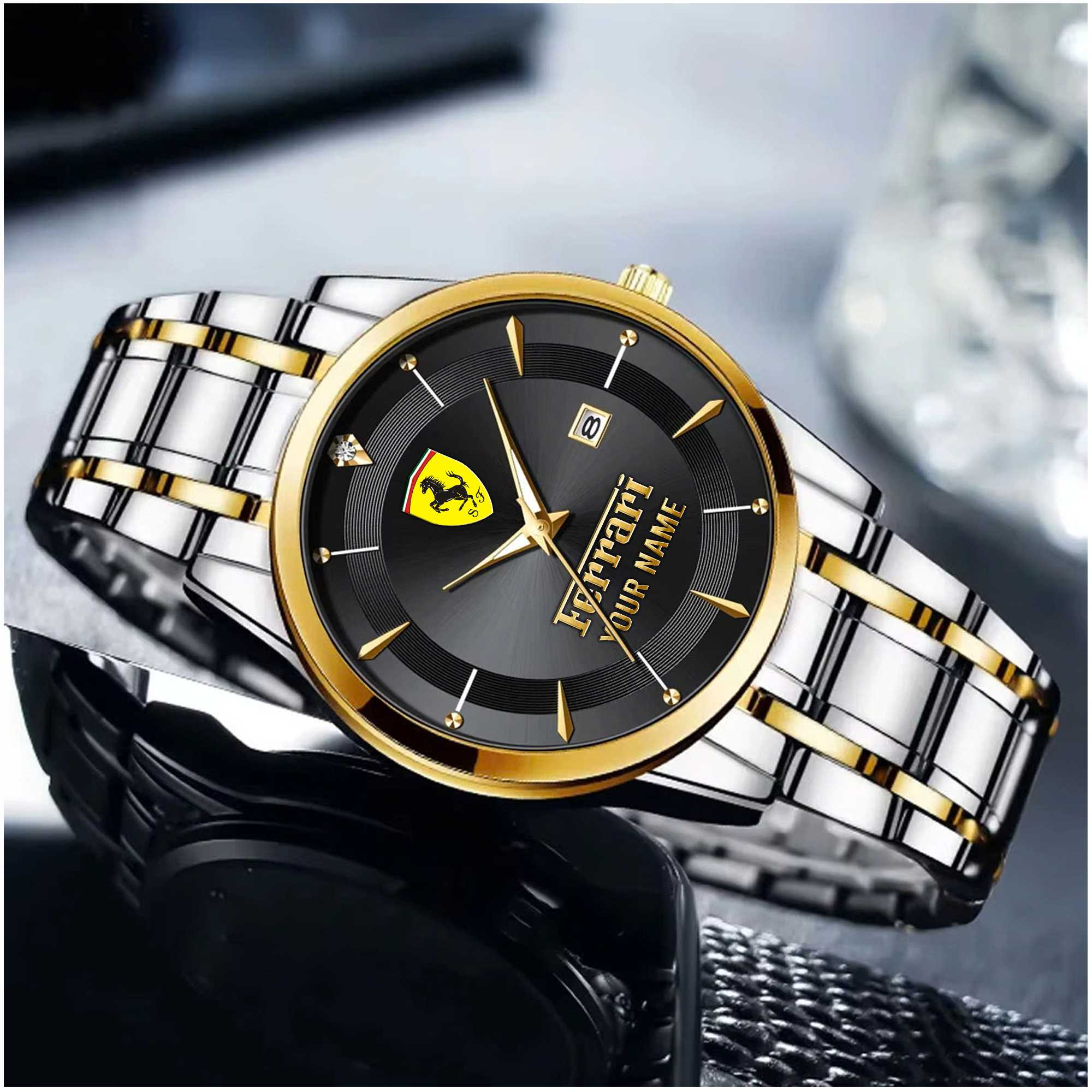 With the launch of the exclusive Made-to-Order service, you can make your watch unique by not only having your special Ferarri Emblem but also your Name printed on the watch. Elevate your style with our custom watches featuring your favorite car logo. Meticulously crafted for durability and water resistance, these watches are the perfect item for daily use. Discover the ultimate combination of luxury, utility, and personalization!