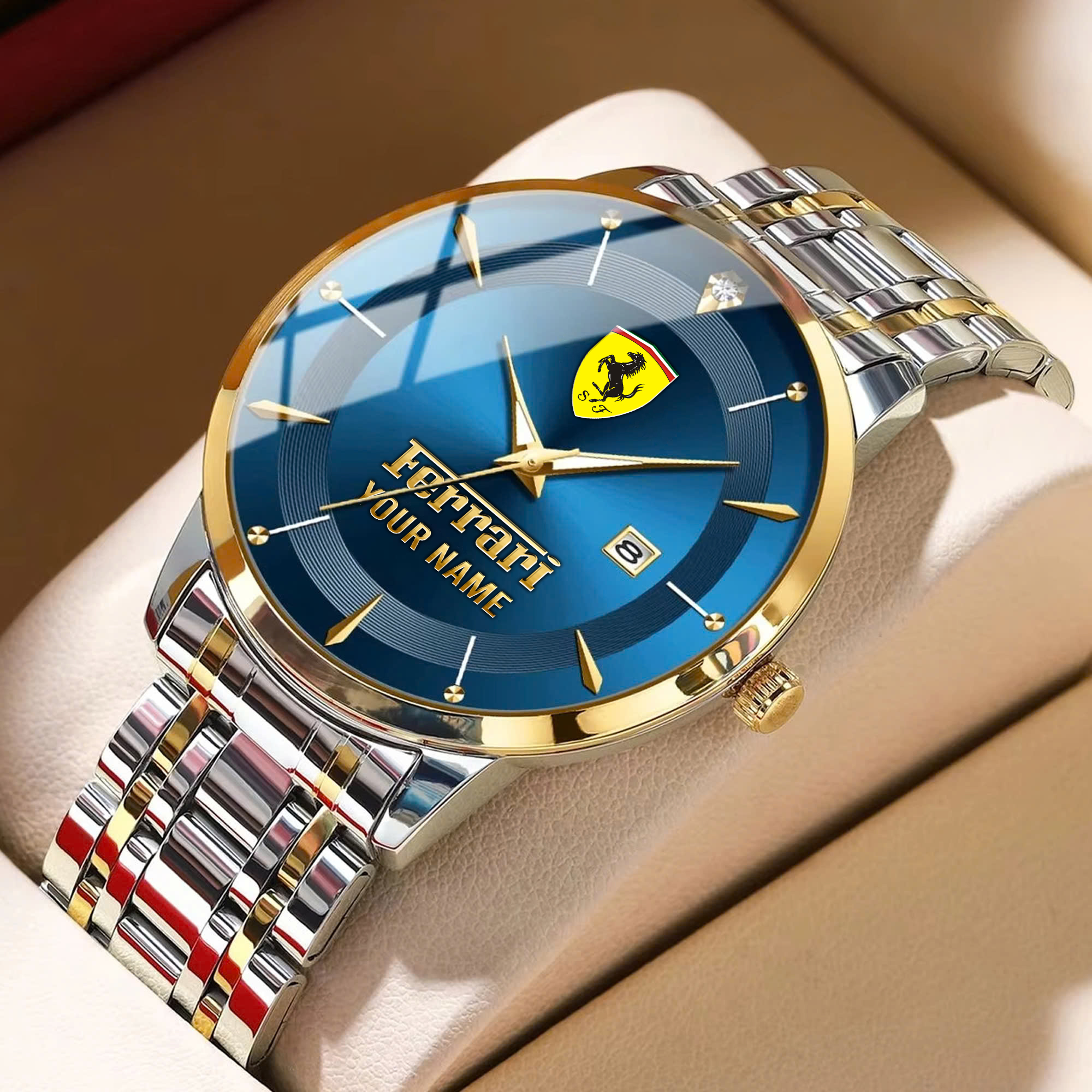 With the launch of the exclusive Made-to-Order service, you can make your watch unique by not only having your special Ferarri Emblem but also your Name printed on the watch. Elevate your style with our custom watches featuring your favorite car logo. Meticulously crafted for durability and water resistance, these watches are the perfect item for daily use. Discover the ultimate combination of luxury, utility, and personalization!