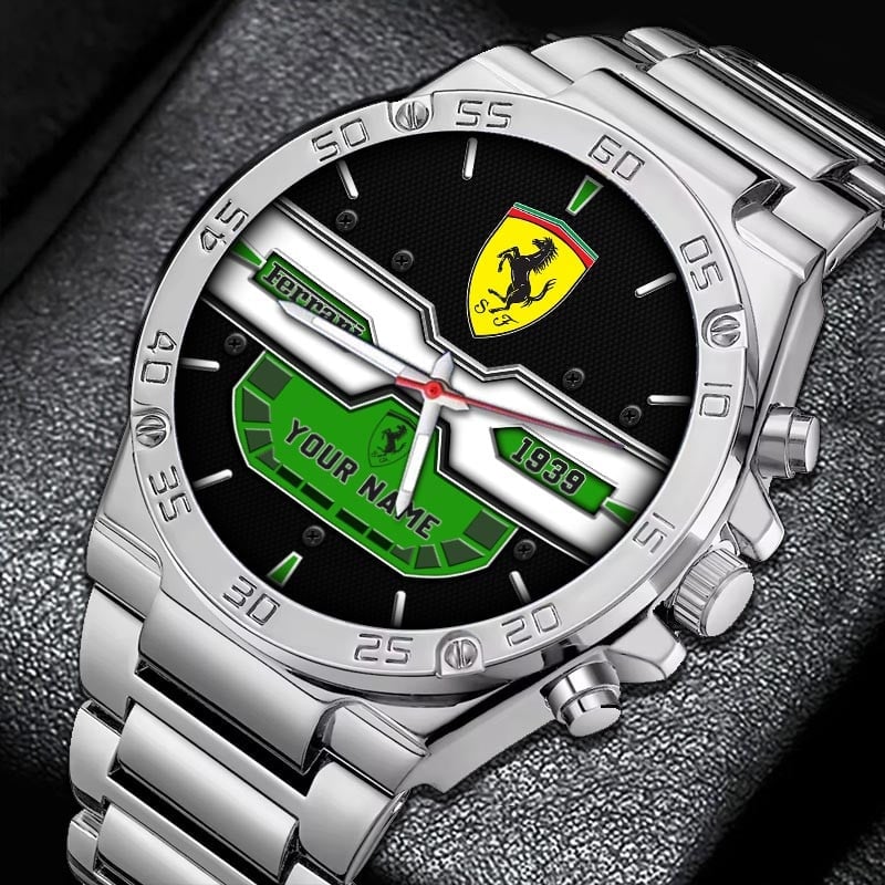 With the launch of the exclusive Made-to-Order service, you can make your watch unique by not only having your special Ferrari Emblem but also your Name printed on the watch. Elevate your style with our custom watches featuring your favorite car logo. Meticulously crafted for durability and water resistance, these watches are the perfect item for daily use. Discover the ultimate combination of luxury, utility, and personalization!