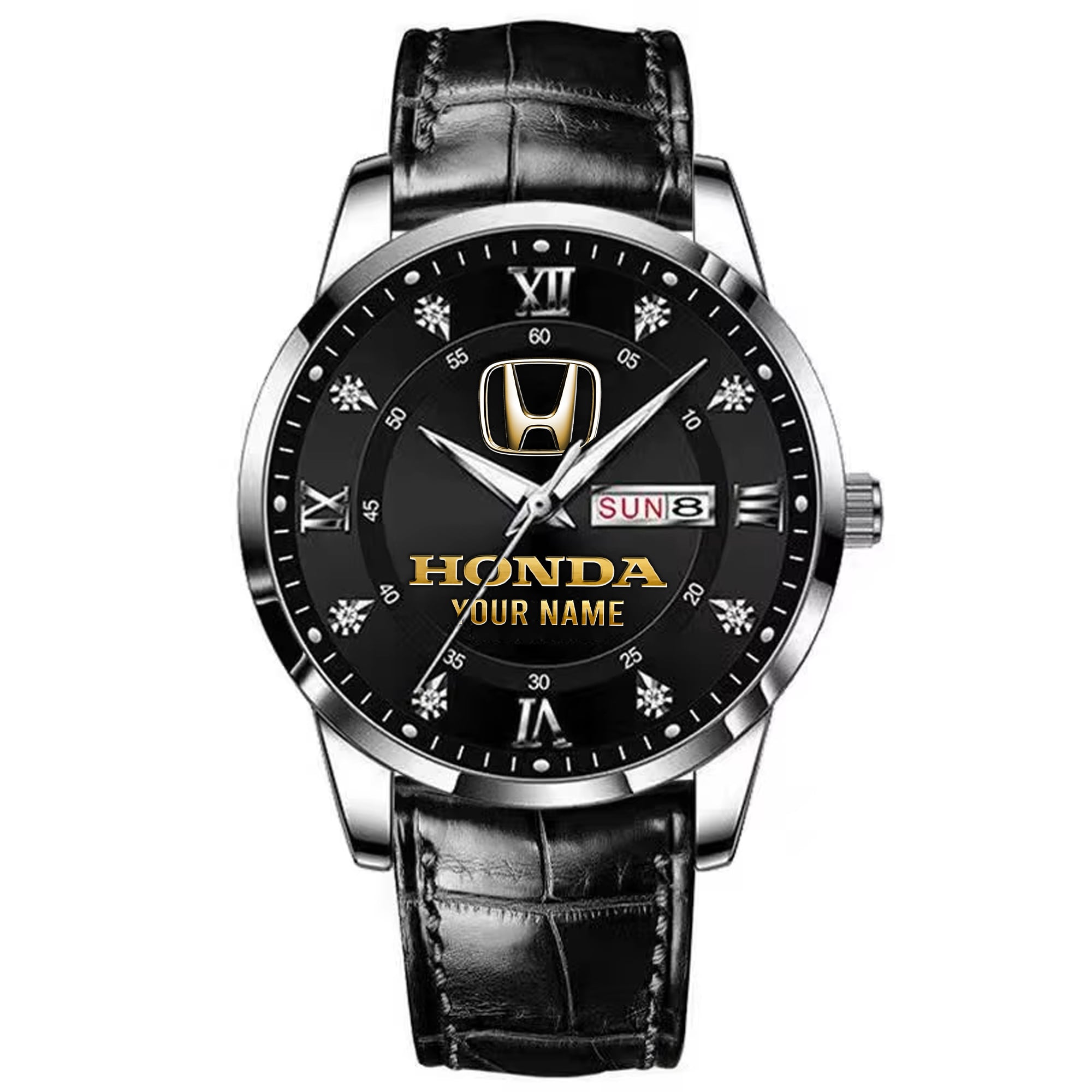 With the launch of the exclusive Made-to-Order service, you can make your watch unique by not only having your special Honda Emblem but also your Name printed on the watch. Elevate your style with our custom watches featuring your favorite car logo. Meticulously crafted for durability and water resistance, these watches are the perfect item for daily use. Discover the ultimate combination of luxury, utility, and personalization!