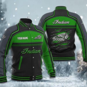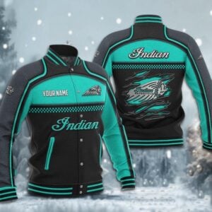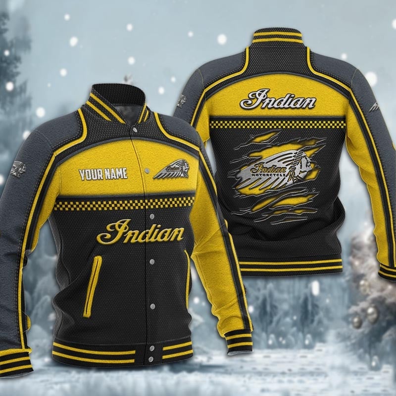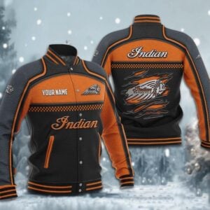 Hi there!! Are you looking at our Indian Motorcycle Baseball Jacket. These Baseball Jackets are unique, made with love, and they are perfect accessories for your outfit. The Indian Motorcycle Emblem on the Baseball Jacket makes it a perfect item for any Indian Motorcycle Lovers.