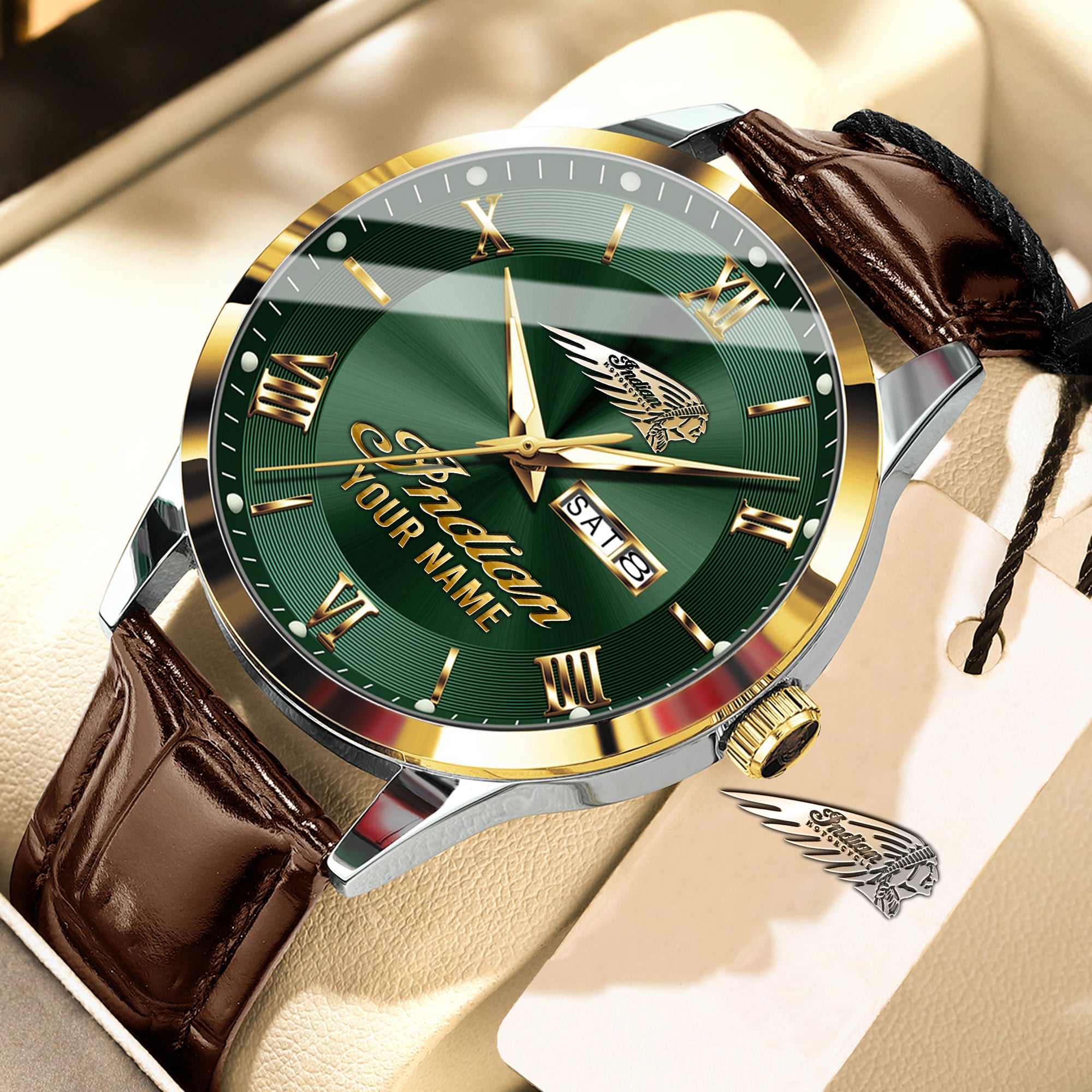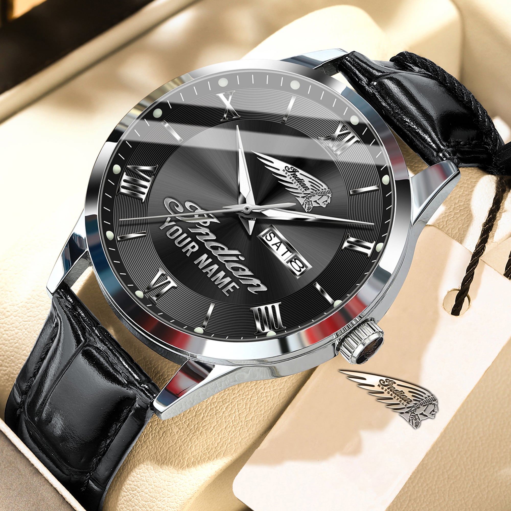 Indian Motorcycles Custom Name Elegant Fashion Design Leather Men Watch VS86A
