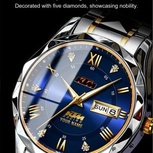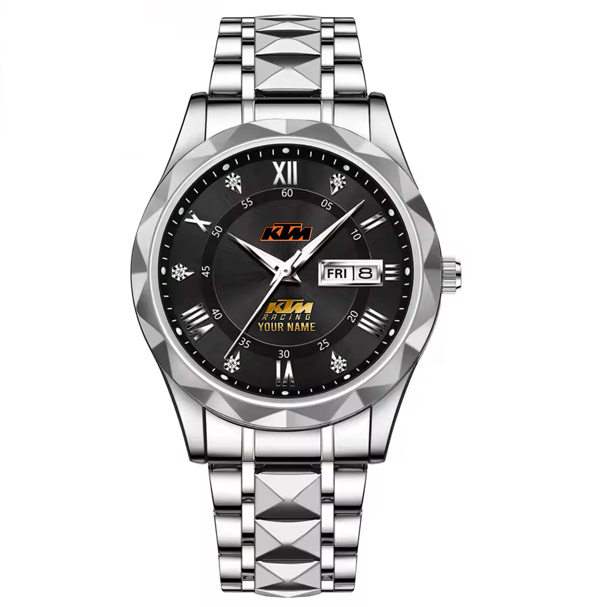 With the launch of the exclusive Made-to-Order service, you can make your watch unique by not only having your special KTM Motorcycles Emblem but also your Name printed on the watch. Elevate your style with our custom watches featuring your favorite car logo. Meticulously crafted for durability and water resistance, these watches are the perfect item for daily use. Discover the ultimate combination of luxury, utility, and personalization!