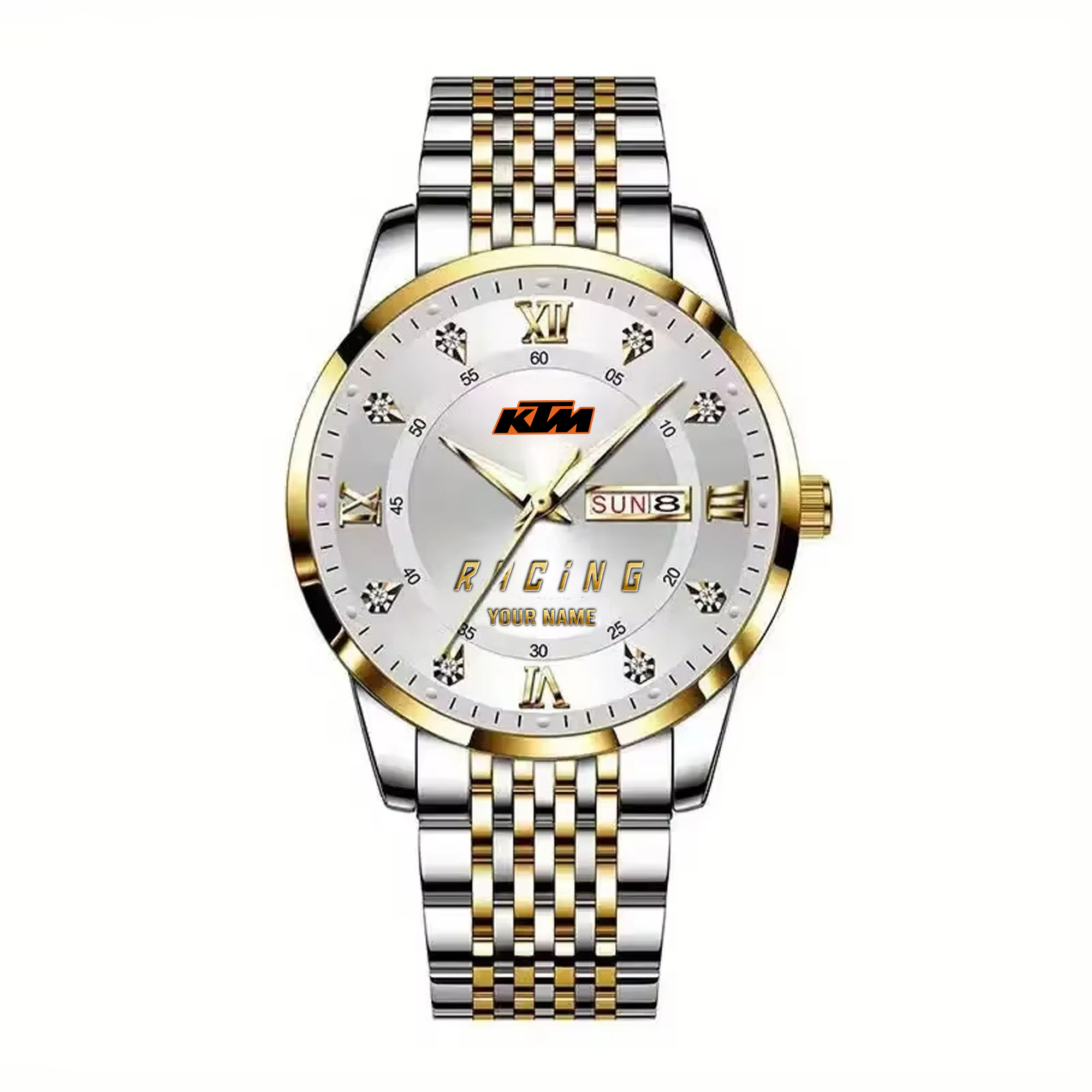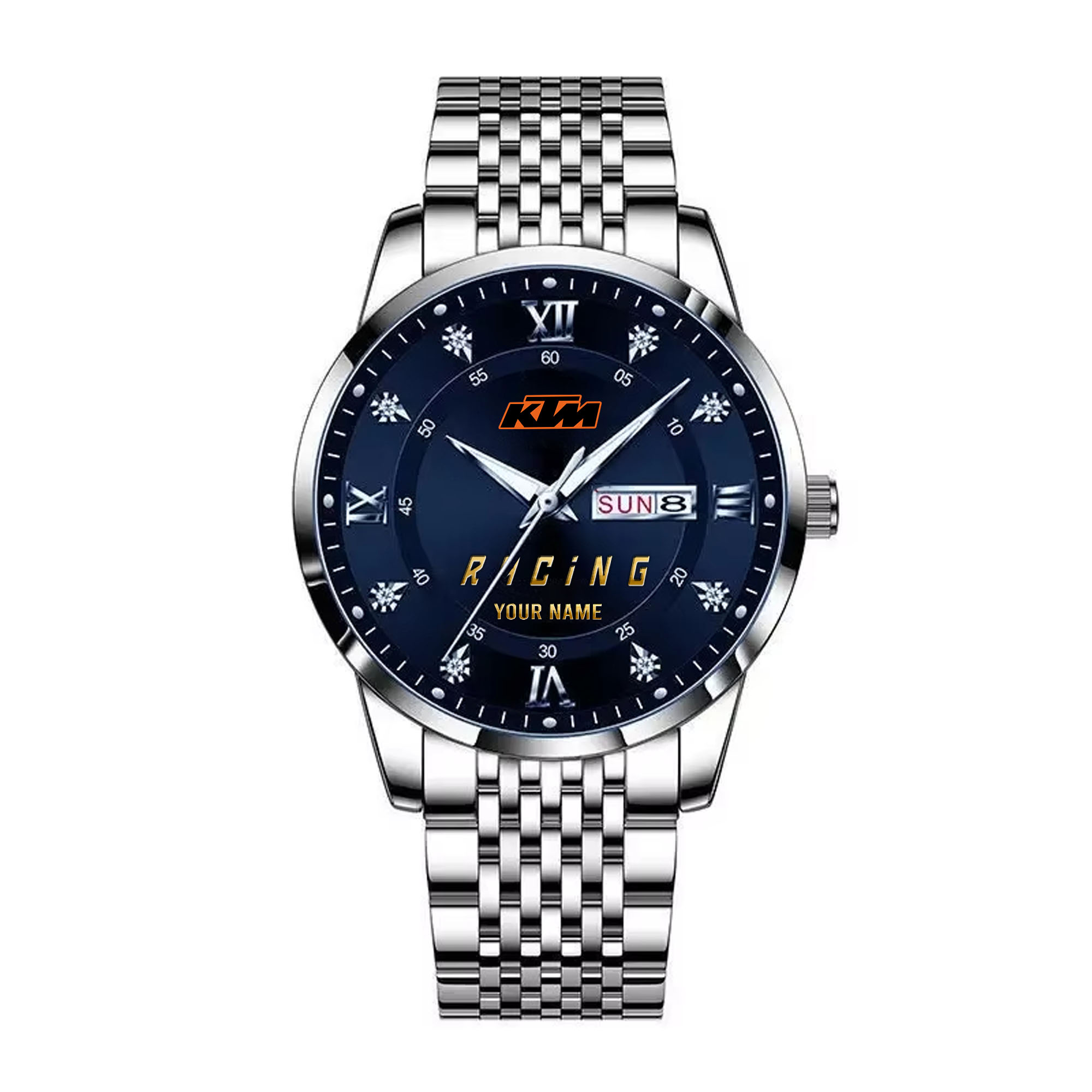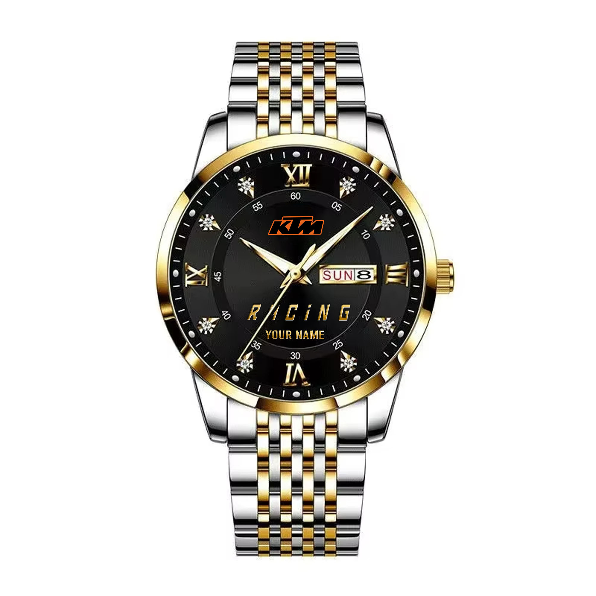 With the launch of the exclusive Made-to-Order service, you can make your watch unique by not only having your special KTM Racing Emblem but also your Name printed on the watch. Elevate your style with our custom watches featuring your favorite car logo. Meticulously crafted for durability and water resistance, these watches are the perfect item for daily use. Discover the ultimate combination of luxury, utility, and personalization!