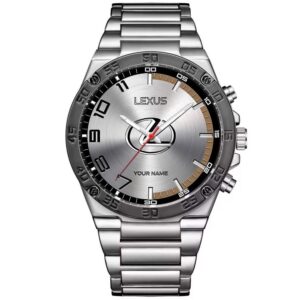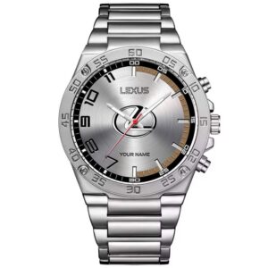 With the launch of the exclusive Made-to-Order service, you can make your watch unique by not only having your special Lexus Emblem but also your Name printed on the watch. Elevate your style with our custom watches featuring your favorite car logo. Meticulously crafted for durability and water resistance, these watches are the perfect item for daily use. Discover the ultimate combination of luxury, utility, and personalization!