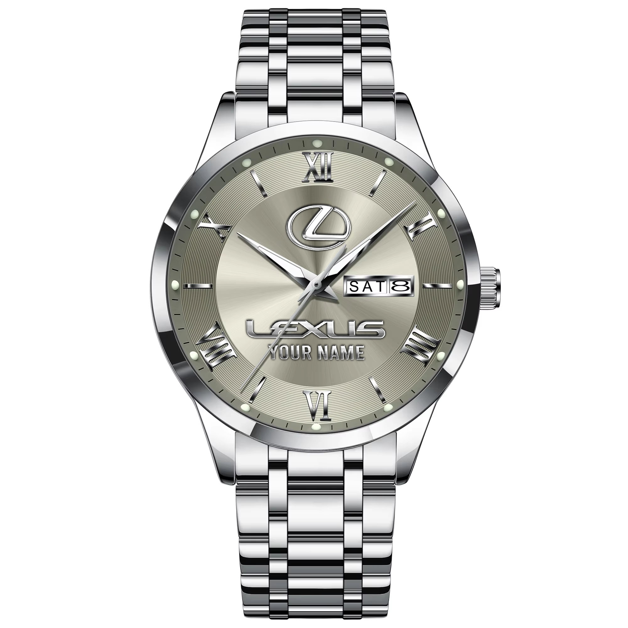 With the launch of the exclusive Made-to-Order service, you can make your watch unique by not only having your special Lexus Emblem but also your Name printed on the watch. Elevate your style with our custom watches featuring your favorite car logo. Meticulously crafted for durability and water resistance, these watches are the perfect item for daily use. Discover the ultimate combination of luxury, utility, and personalization!