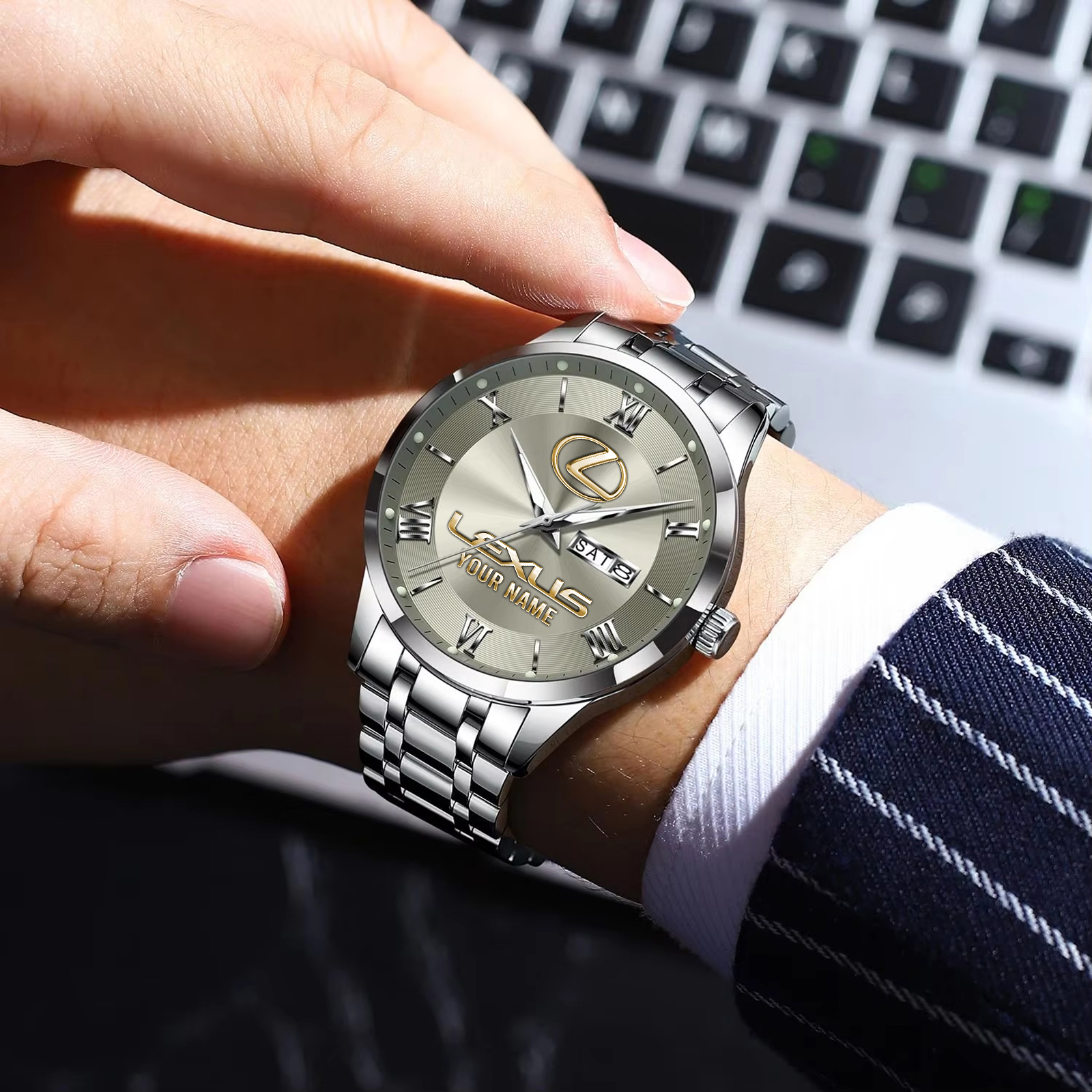 With the launch of the exclusive Made-to-Order service, you can make your watch unique by not only having your special Lexus Emblem but also your Name printed on the watch. Elevate your style with our custom watches featuring your favorite car logo. Meticulously crafted for durability and water resistance, these watches are the perfect item for daily use. Discover the ultimate combination of luxury, utility, and personalization!