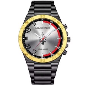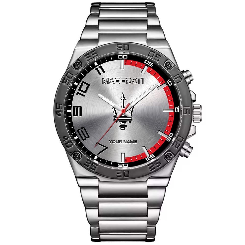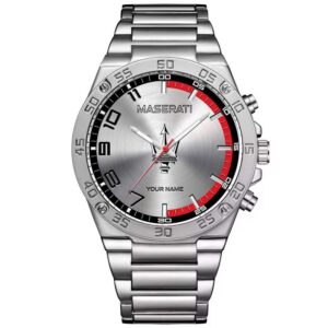 With the launch of the exclusive Made-to-Order service, you can make your watch unique by not only having your special Maserati Emblem but also your Name printed on the watch. Elevate your style with our custom watches featuring your favorite car logo. Meticulously crafted for durability and water resistance, these watches are the perfect item for daily use. Discover the ultimate combination of luxury, utility, and personalization!