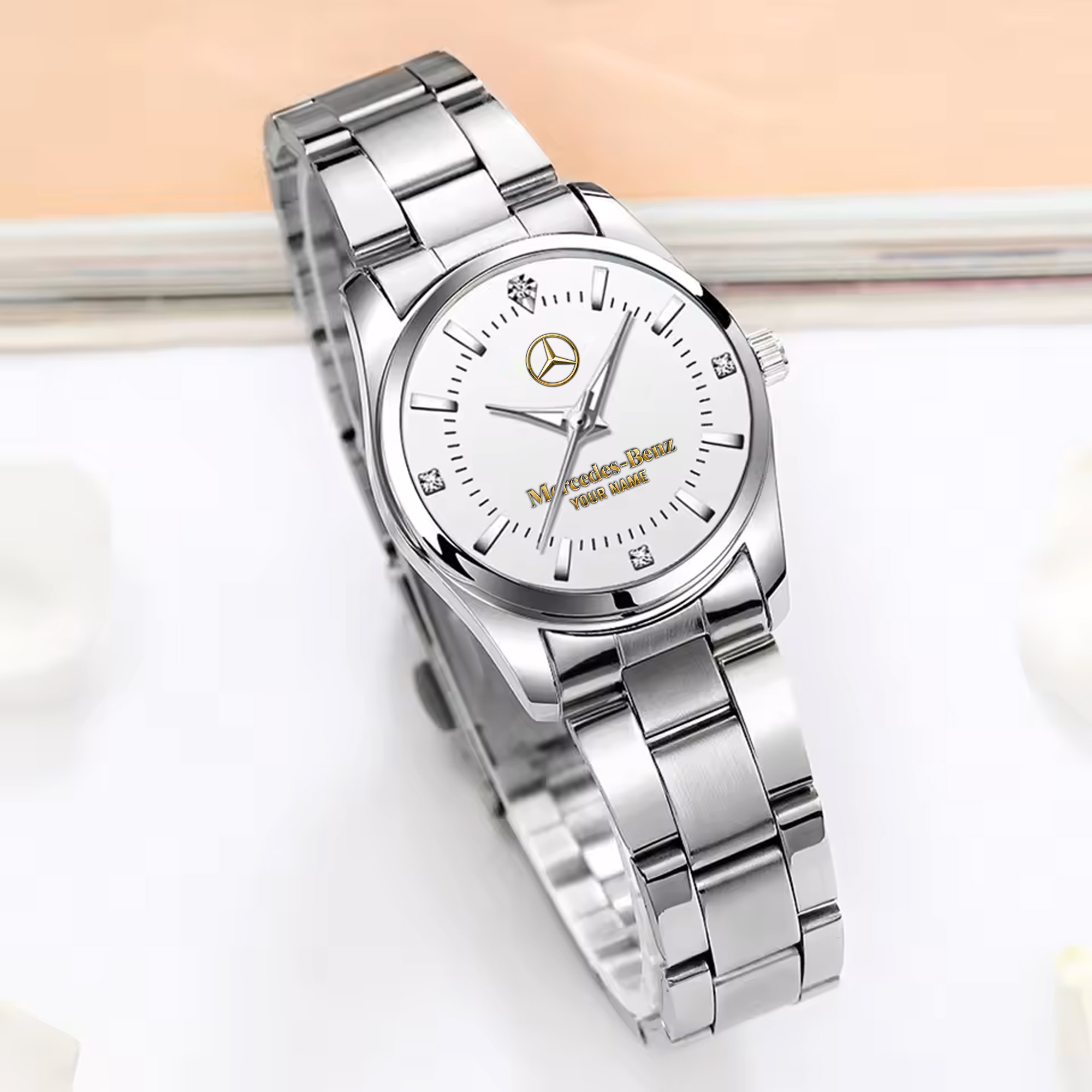 With the launch of the exclusive Made-to-Order service, you can make your watch unique by not only having your special Mercedes-Benz Emblem but also your Name printed on the watch. Elevate your style with our custom watches featuring your favorite car logo. Meticulously crafted for durability and water resistance, these watches are the perfect item for daily use. Discover the ultimate combination of luxury, utility, and personalization!