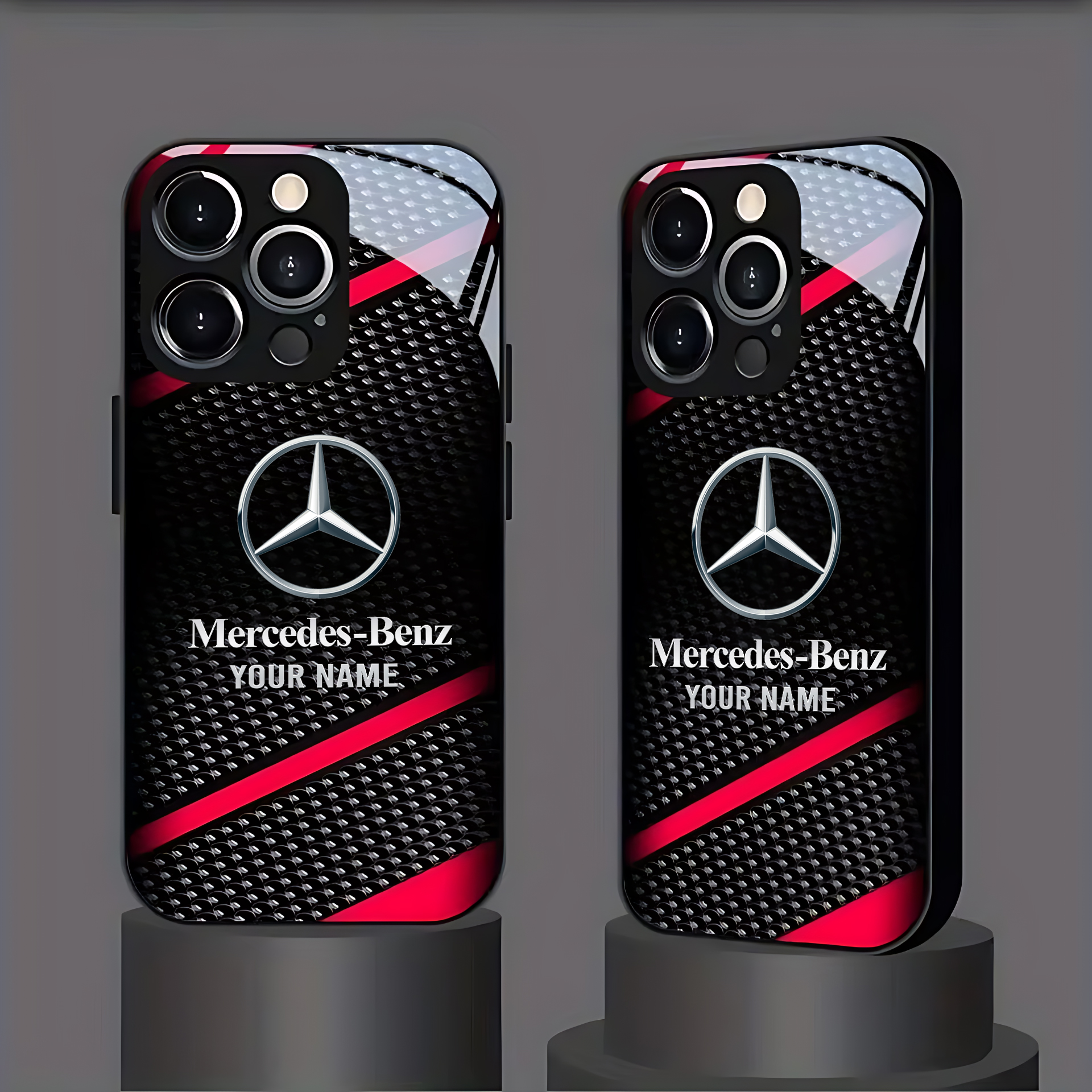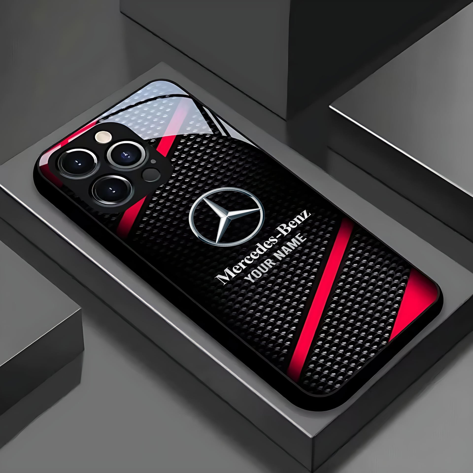 Mercedes Black Carbon Fiber For Apple Pattern Glass Phone Case