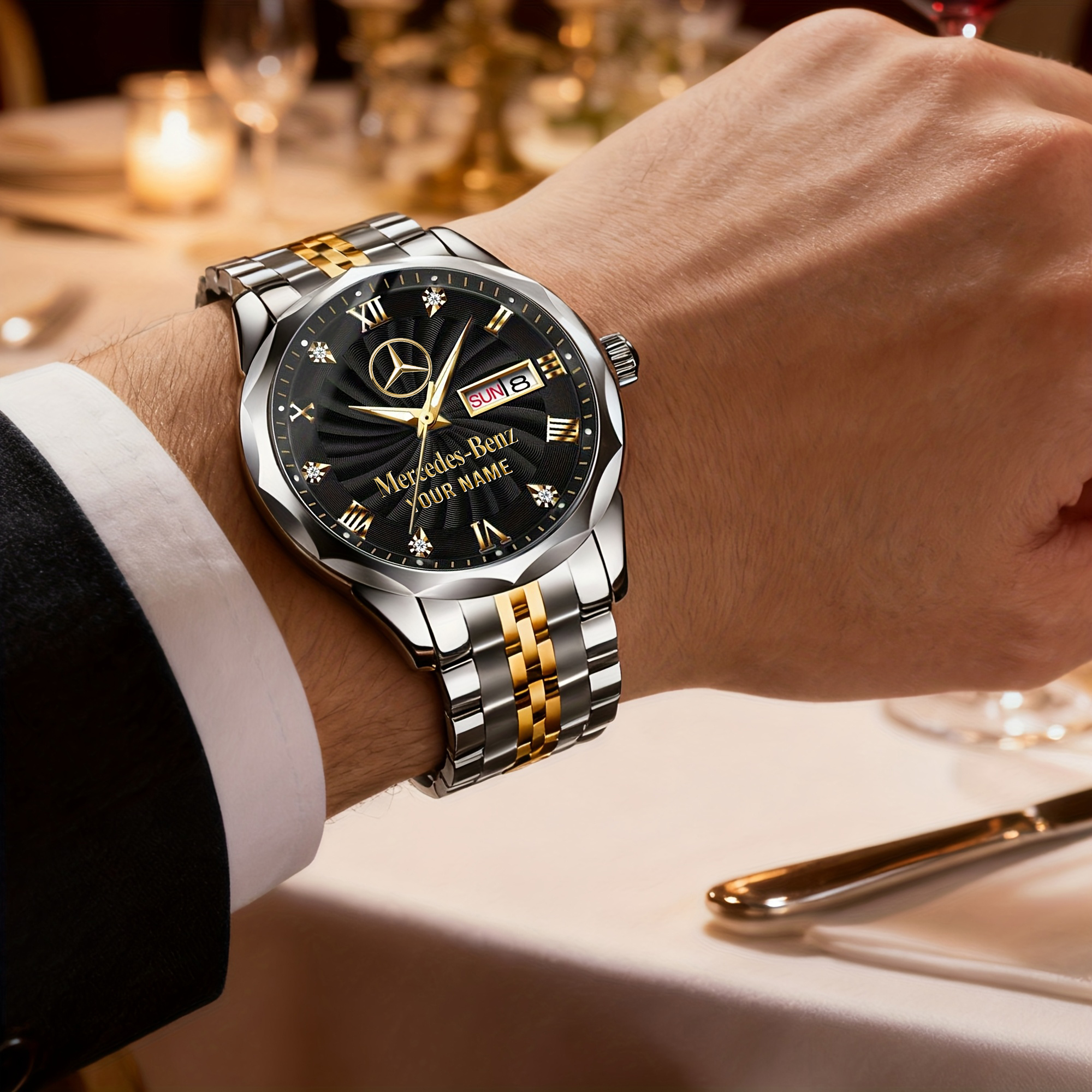 With the launch of the exclusive Made-to-Order service, you can make your watch unique by not only having your special Mercedes Emblem but also your Name printed on the watch. Elevate your style with our custom watches featuring your favorite car logo. Meticulously crafted for durability and water resistance, these watches are the perfect item for daily use. Discover the ultimate combination of luxury, utility, and personalization!