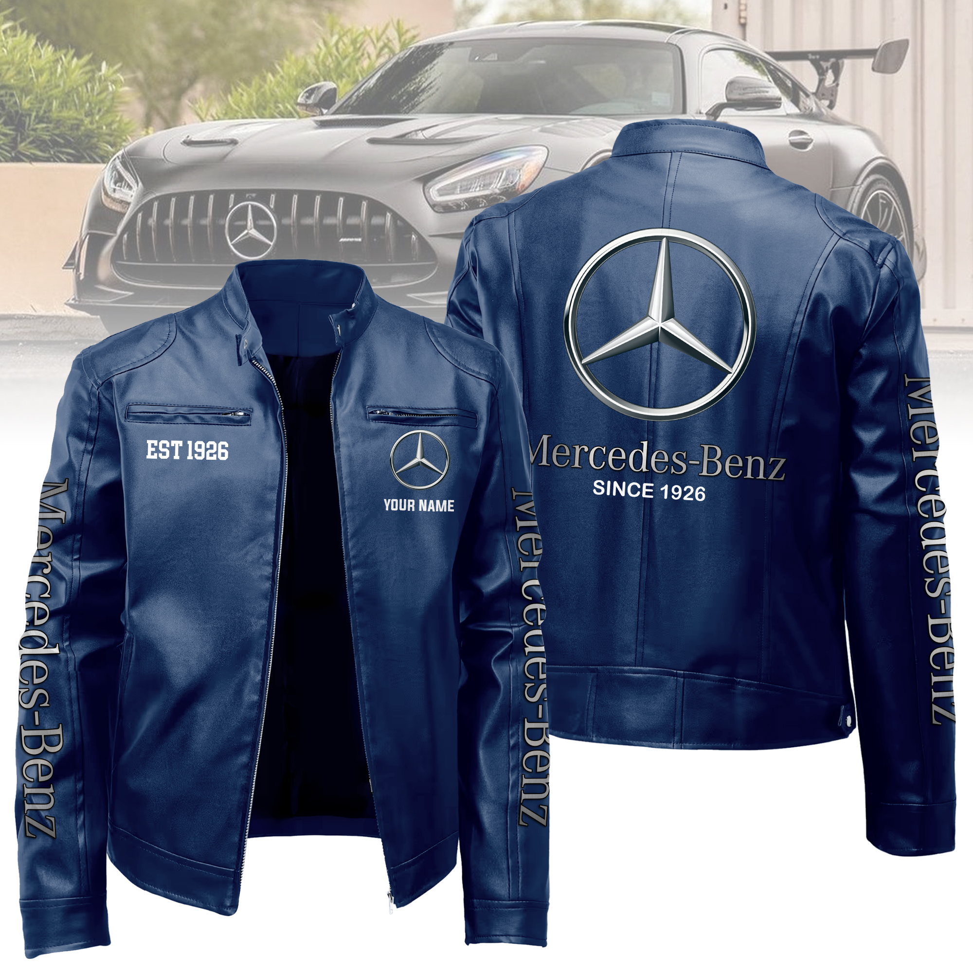 Hi there!! Are you looking at our Mercedes Leather Jacket. These Leather Jackets are unique, made with love, and they are perfect accessories for your outfit. The Mercedes Emblem on the Leather Jackets makes it a perfect item for any Mercedes Lovers.