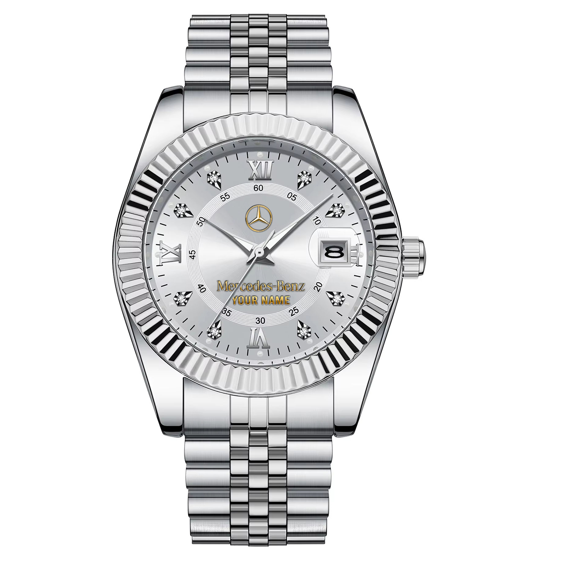 With the launch of the exclusive Made-to-Order service, you can make your watch unique by not only having your special Mercedes Emblem but also your Name printed on the watch. Elevate your style with our custom watches featuring your favorite car logo. Meticulously crafted for durability and water resistance, these watches are the perfect item for daily use. Discover the ultimate combination of luxury, utility, and personalization!