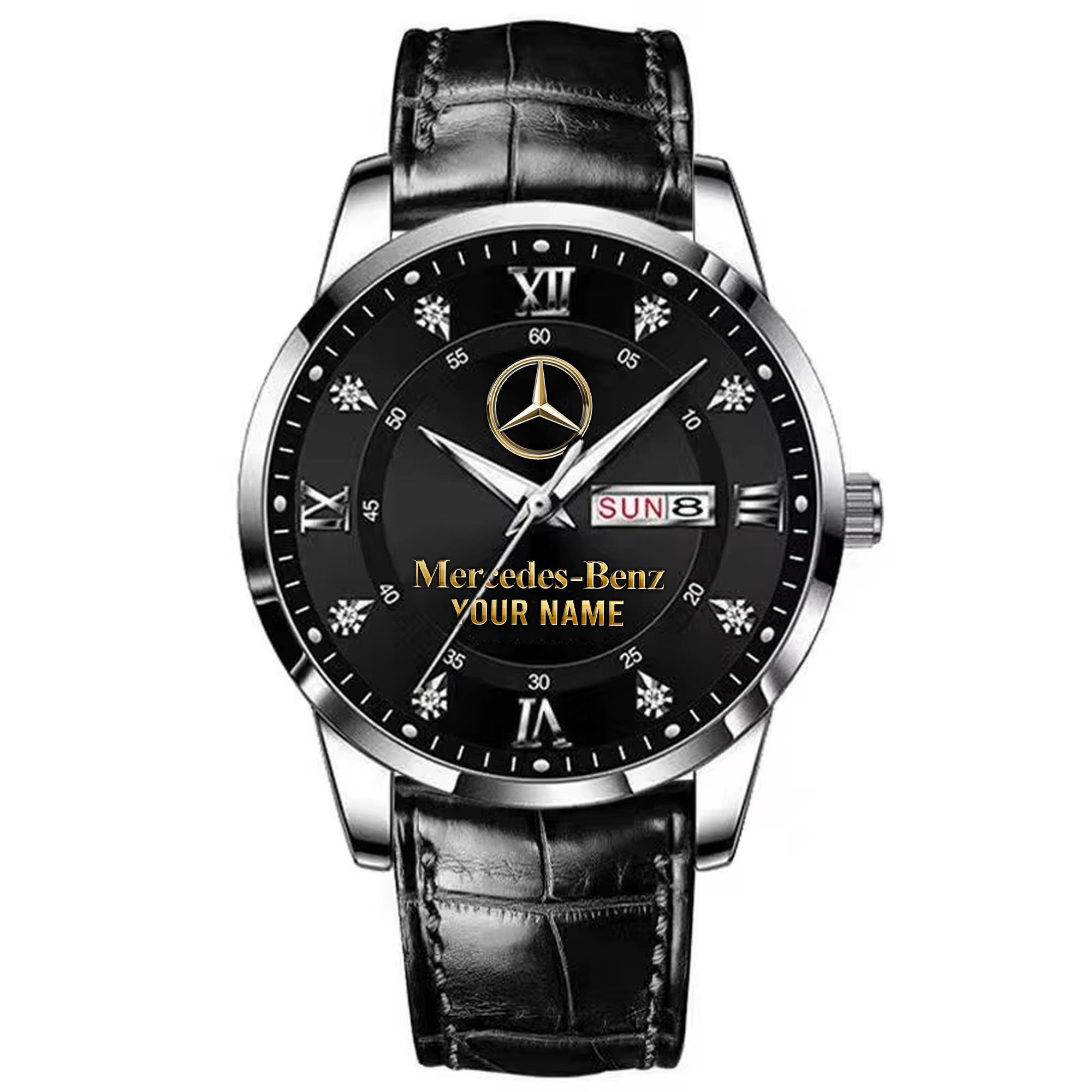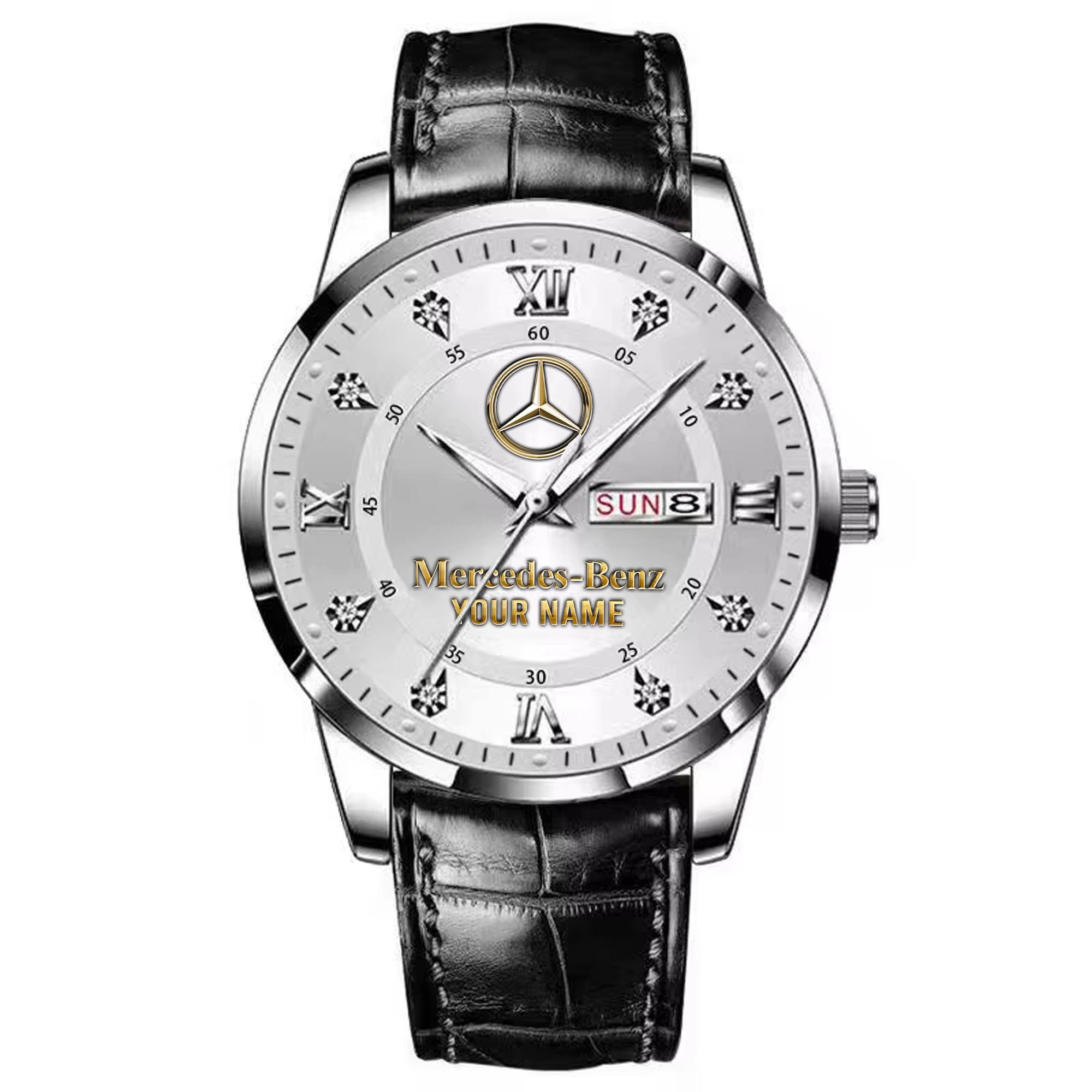 With the launch of the exclusive Made-to-Order service, you can make your watch unique by not only having your special Mercedes Emblem but also your Name printed on the watch. Elevate your style with our custom watches featuring your favorite car logo. Meticulously crafted for durability and water resistance, these watches are the perfect item for daily use. Discover the ultimate combination of luxury, utility, and personalization!