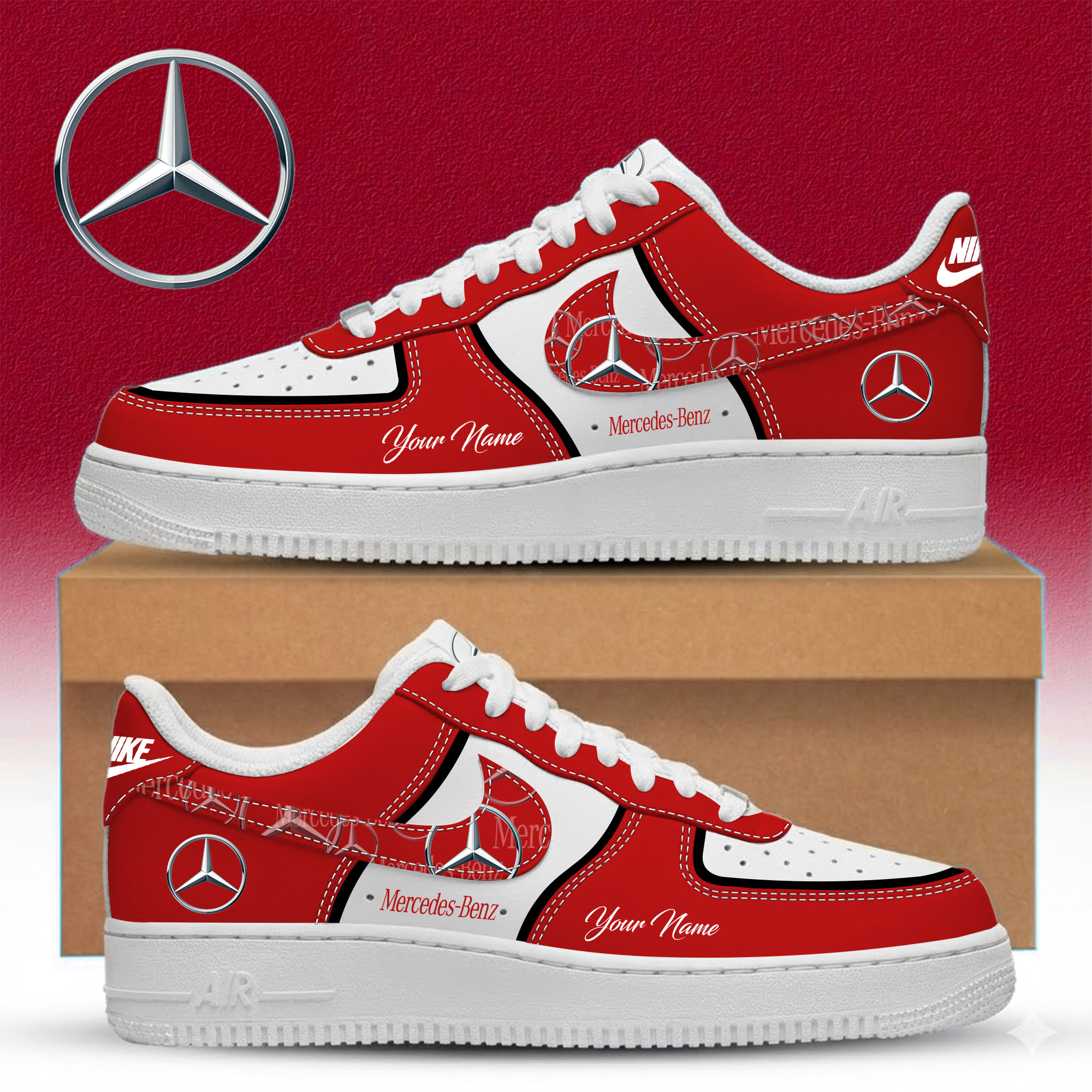 Hi there!! Are you looking at our Mercedes shoes/sneakers. These sneakers are unique, made with love, and they are perfect accessories for your outfit. The Mercedes Emblem on the shoes makes it a perfect item for any Mercedes Lovers.