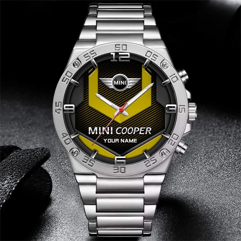 With the launch of the exclusive Made-to-Order service, you can make your watch unique by not only having your special Mini Cooper Emblem but also your Name printed on the watch. Elevate your style with our custom watches featuring your favorite car logo. Meticulously crafted for durability and water resistance, these watches are the perfect item for daily use. Discover the ultimate combination of luxury, utility, and personalization!