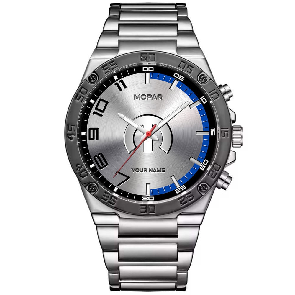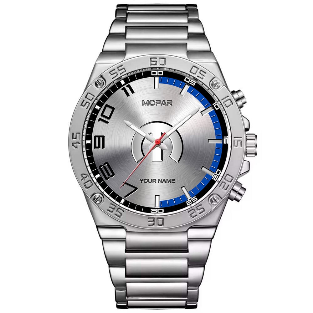 With the launch of the exclusive Made-to-Order service, you can make your watch unique by not only having your special Mopar Emblem but also your Name printed on the watch. Elevate your style with our custom watches featuring your favorite car logo. Meticulously crafted for durability and water resistance, these watches are the perfect item for daily use. Discover the ultimate combination of luxury, utility, and personalization!