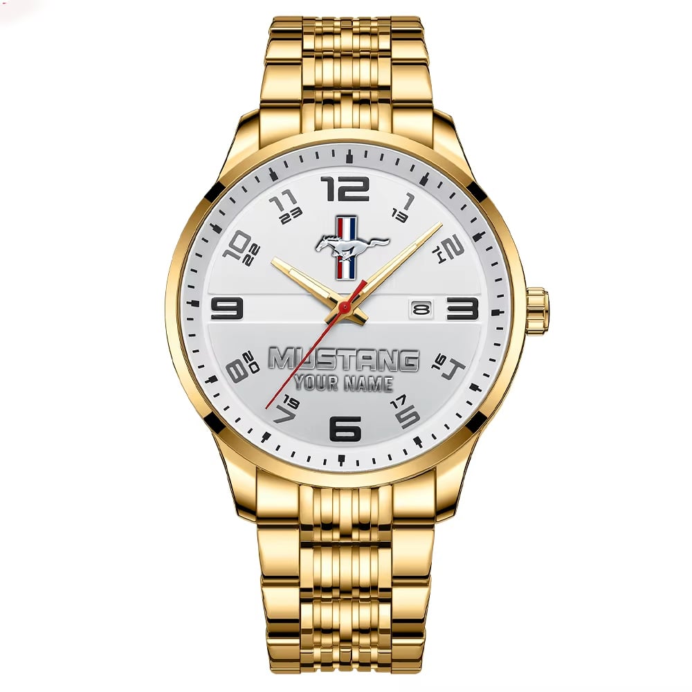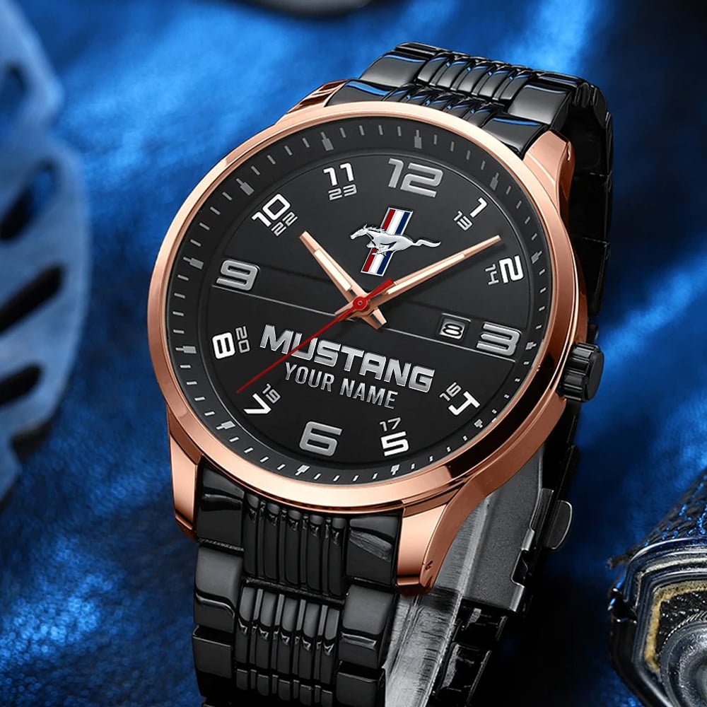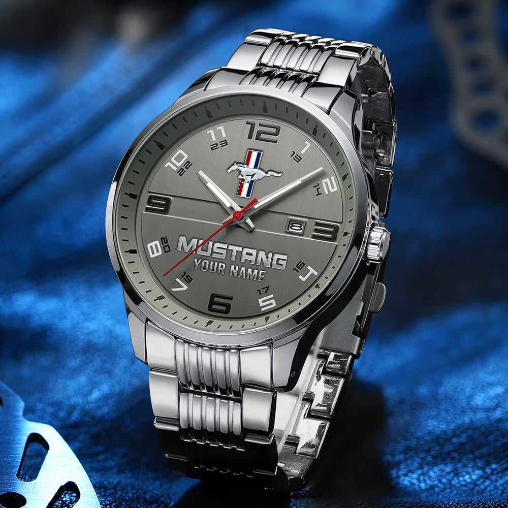 With the launch of the exclusive Made-to-Order service, you can make your watch unique by not only having your special Mustang Emblem but also your Name printed on the watch. Elevate your style with our custom watches featuring your favorite car logo. Meticulously crafted for durability and water resistance, these watches are the perfect item for daily use. Discover the ultimate combination of luxury, utility, and personalization!