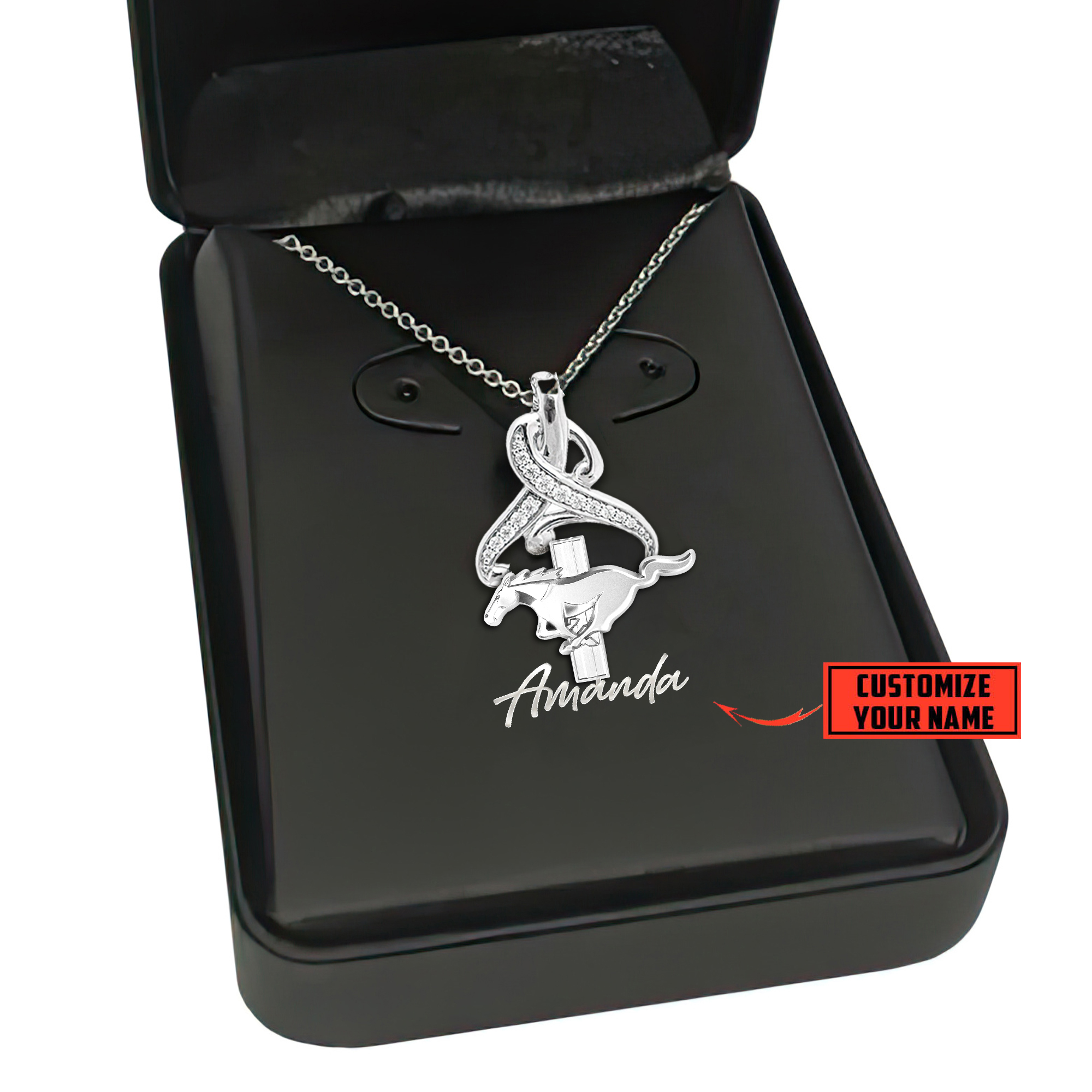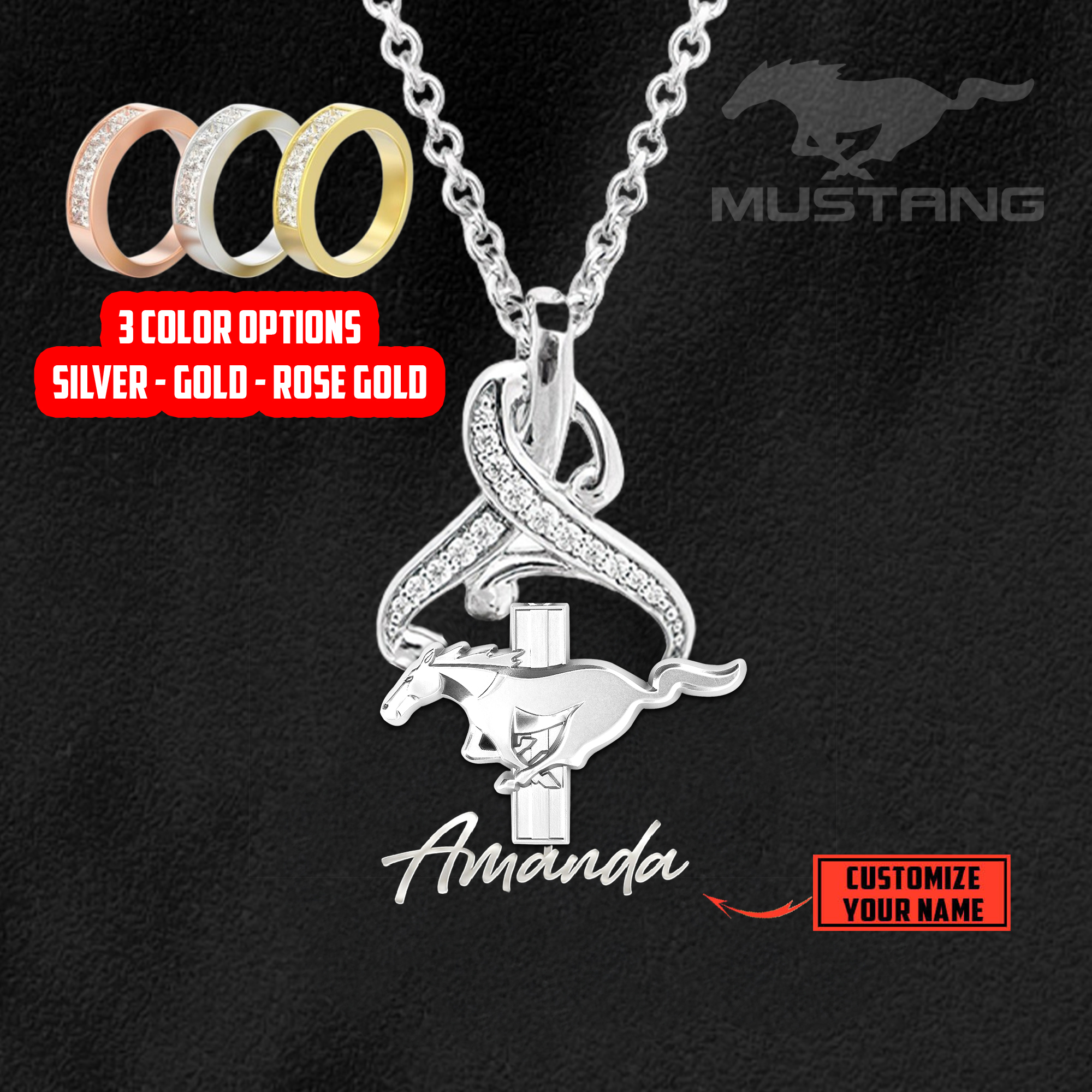 Hi there!! Are you looking at our Mustang Necklace. Our custom designs offer a personal touch that’s perfect for any look. This Necklace for Women is made with Genuine Sterling Silver and is sure to become a staple in your wardrobe. The Mustang Emblem on the necklace makes it a perfect item for any Mustang Lovers.