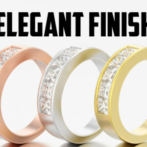 3D illustration three simple classic yellow rose and white gold or silver diamond rings on a grey background