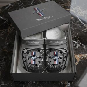 Hi there!! Are you looking at our Mustang Crocs Shoes. These Shoes are unique, made with love, and they are perfect accessories for your outfit. The Mustang Emblem on the shoes makes it a perfect item for any Mustang Lovers.