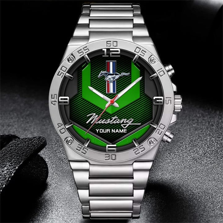 With the launch of the exclusive Made-to-Order service, you can make your watch unique by not only having your special Mustang Emblem but also your Name printed on the watch. Elevate your style with our custom watches featuring your favorite car logo. Meticulously crafted for durability and water resistance, these watches are the perfect item for daily use. Discover the ultimate combination of luxury, utility, and personalization!